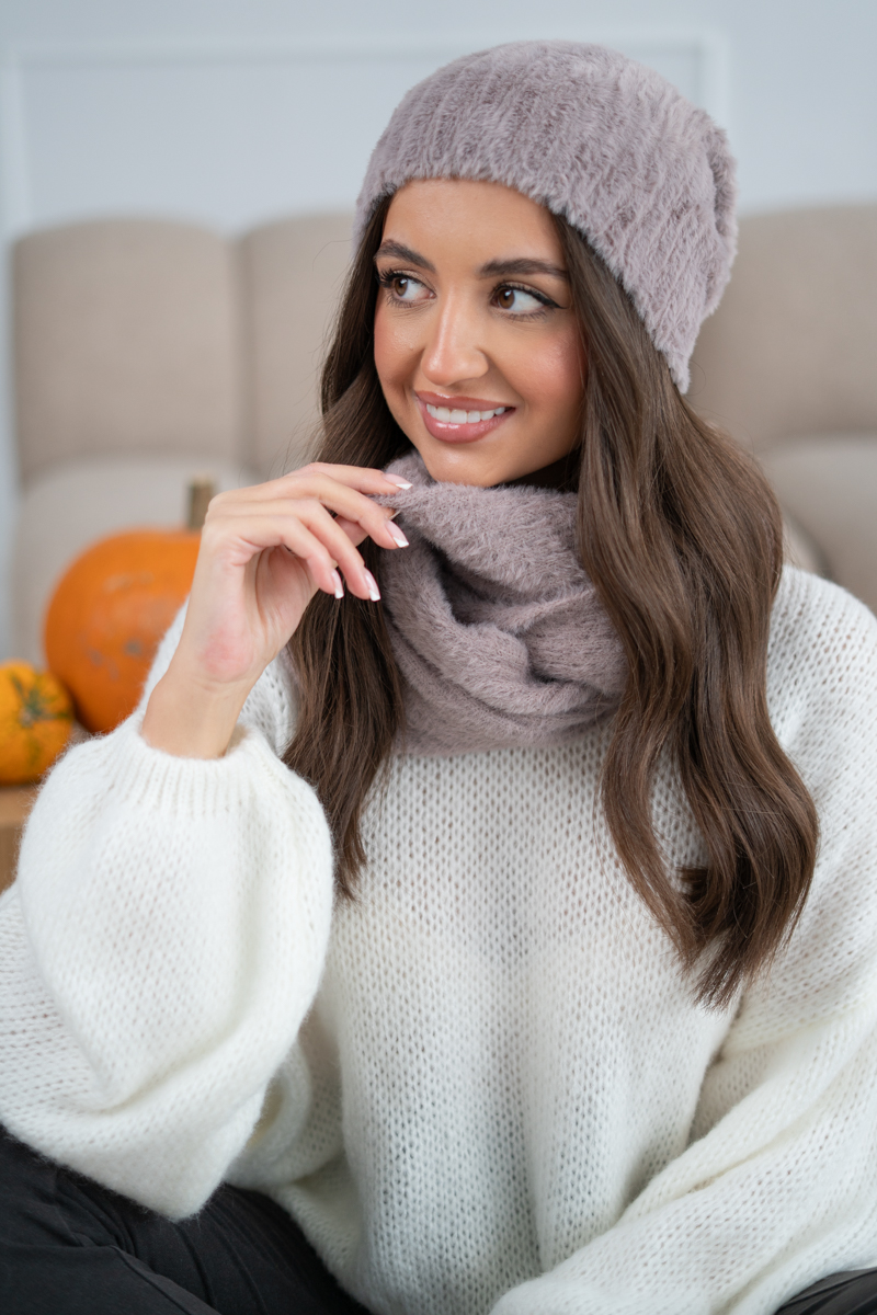Komin alpaka w kolorze fango to elegancki i uniwersalny dodatek, który łączy styl z wyjątkowym komfortem. Wykonany z miękkiej, puszystej przędzy z domieszką alpaki, zapewnia ciepło i przyjemne otulenie w chłodne dni. Jego subtelny odcień fango – połączenie beżu i szarości – nadaje mu nowoczesny, stonowany charakter, doskonale pasujący do różnorodnych stylizacji. Komin pięknie układa się wokół szyi, chroniąc przed wiatrem i zimnem. To idealny wybór dla osób ceniących naturalne materiały, elegancję i ponadczasowy design.