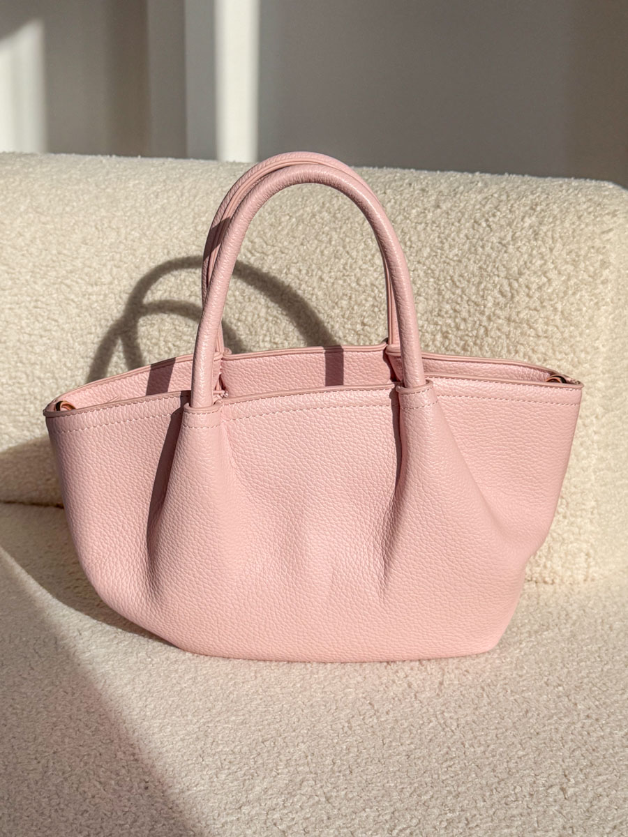 Torebka Sailé w pudrowym odcieniu to subtelny i niezwykle kobiecy dodatek, który pięknie dopełni lekkie, romantyczne stylizacje. Fason łódki z delikatnie zaokrągloną linią nadaje jej elegancji i ponadczasowego charakteru. Wykonana z materiału o drobnej, ziarnistej fakturze, prezentuje się stylowo i estetycznie. Podwójne rączki zapewniają wygodne noszenie, a praktyczne zamknięcie chroni zawartość. Pojemne wnętrze sprawdzi się zarówno na co dzień, jak i podczas wyjątkowych okazji. To harmonijne połączenie funkcjonalności i kobiecego uroku.