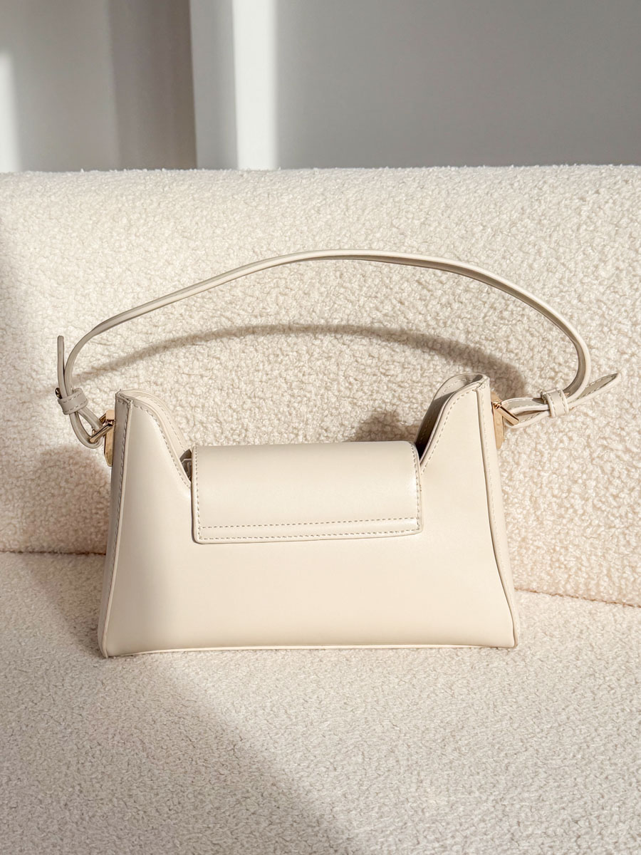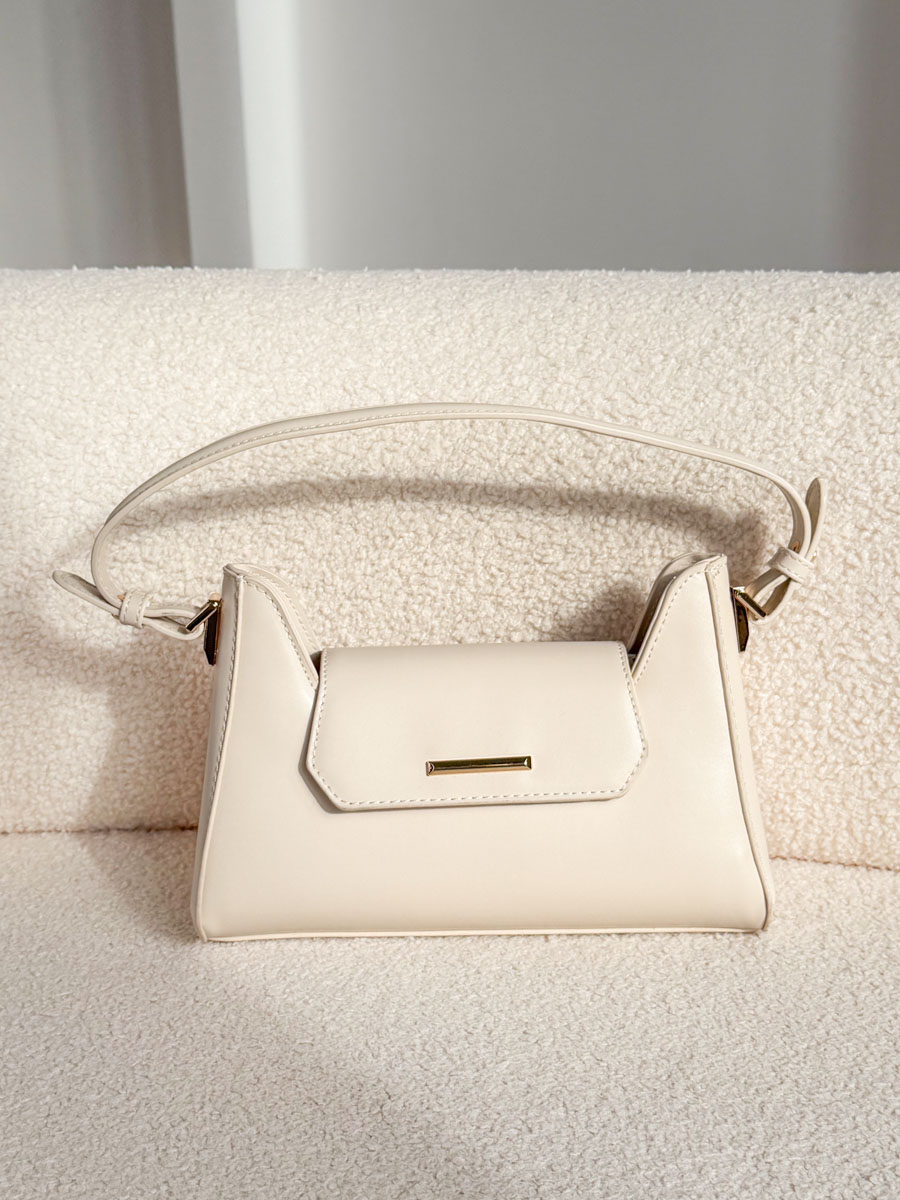 Torebka Long Way w eleganckim, beżowym odcieniu to stylowy dodatek o nowoczesnej, wydłużonej formie. Smukła, długa rączka nadaje jej lekkości i zapewnia komfort noszenia w dłoni lub na ramieniu. Gładka, starannie wykończona powierzchnia podkreśla minimalistyczny charakter modelu, a subtelne złote detale dodają mu szyku. Zamykana klapka chroni zawartość, łącząc estetykę z funkcjonalnością. Kompaktowy, a jednocześnie praktyczny fason sprawdzi się zarówno na co dzień, jak i podczas eleganckich wyjść. To ponadczasowa propozycja dla kobiet ceniących klasę i wygodę w nowoczesnym wydaniu.