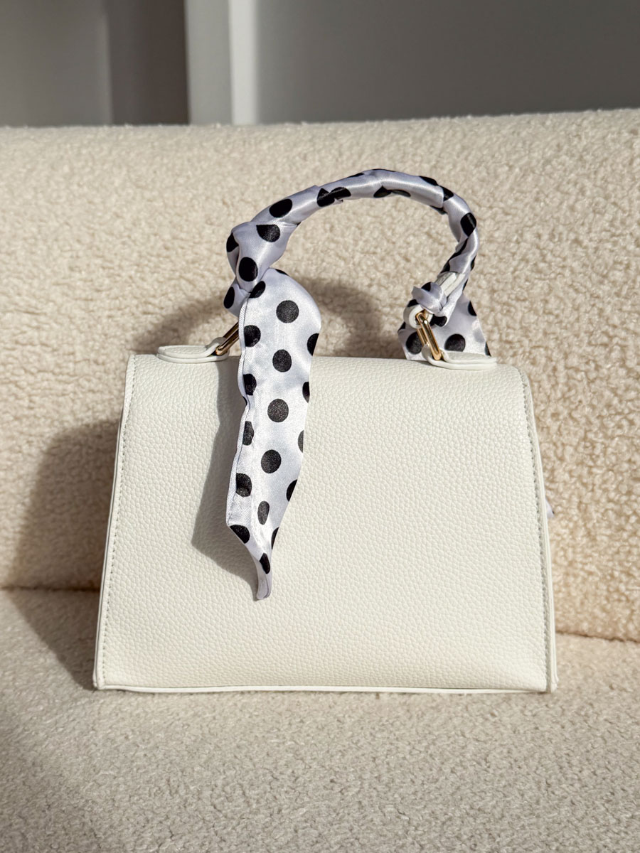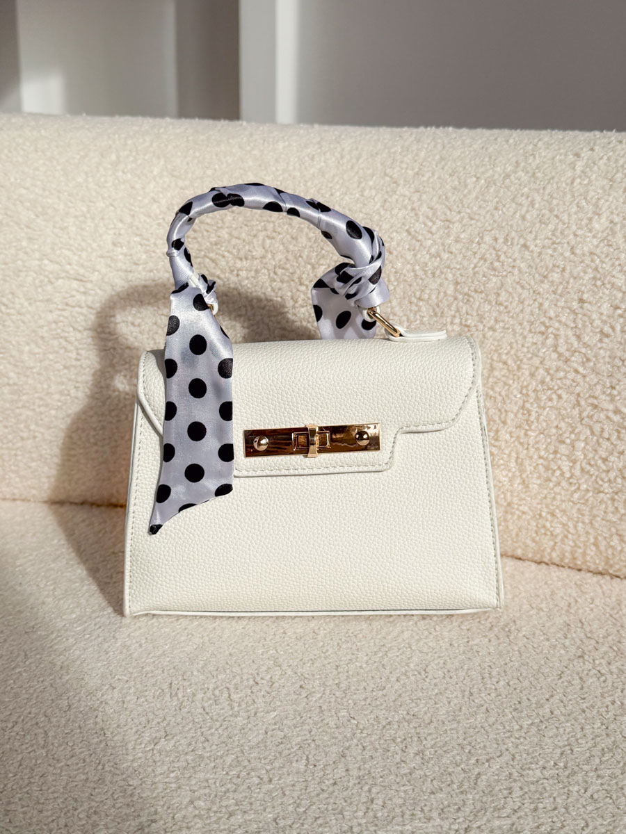 Torebka Golden Ribbon w klasycznym białym kolorze to elegancki i świeży akcent, który doskonale dopełni każdą stylizację. Wykonana z materiału o subtelnej, ziarnistej fakturze, prezentuje się stylowo i nowocześnie. Złote detale nadają jej szyku, a ozdobna wstążka przy rączce – w kontrastowy wzór – podkreśla wyjątkowy charakter modelu. Klapka z solidnym zamknięciem zapewnia bezpieczeństwo przechowywanych drobiazgów, a poręczny fason sprawia, że torebka jest wygodna zarówno na co dzień, jak i na specjalne okazje. To połączenie klasy, kobiecości i modnego wykończenia.