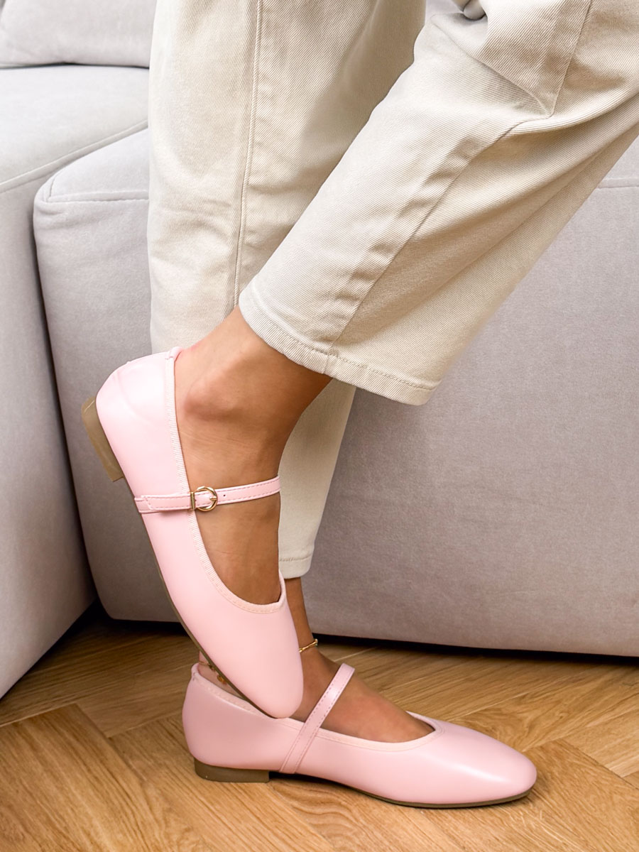 Balerinki z paskiem z eko skóry w pudrowym odcieniu to idealne połączenie delikatnego stylu i codziennej wygody. Wykonane ze skóry ekologicznej, są miękkie, estetyczne i przyjemne w noszeniu, dzięki czemu sprawdzą się nawet przy dłuższym użytkowaniu. Pasek zapinany na sprzączkę umożliwia precyzyjne dopasowanie do stopy, zwiększając stabilność i komfort chodzenia. Płaski obcas zapewnia lekkość kroku i naturalne ułożenie stopy, co czyni ten model doskonałym wyborem na co dzień. Pudrowy kolor dodaje subtelnej elegancji i świetnie komponuje się zarówno z jasnymi, jak i romantycznymi stylizacjami. To uniwersalne balerinki, które z łatwością dopasujesz do wielu okazji.