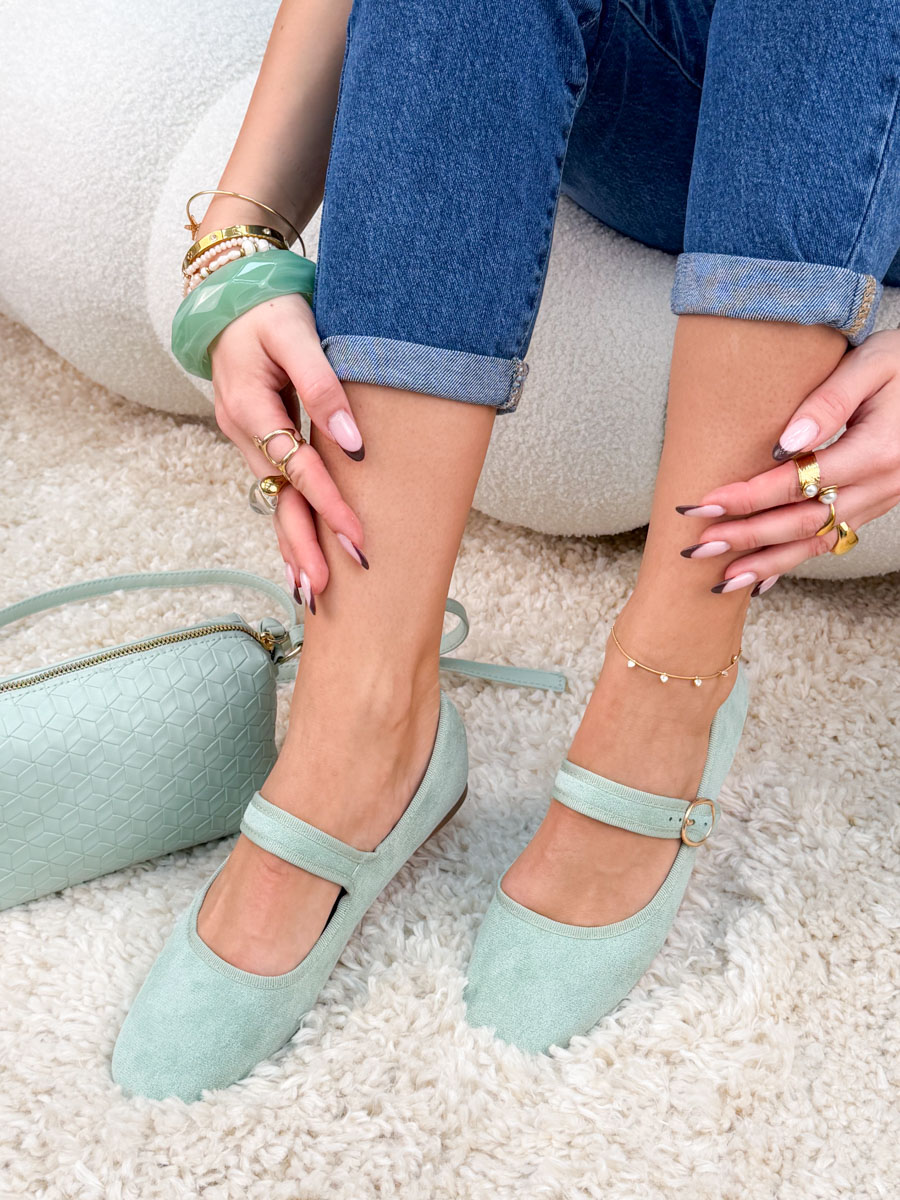 Balerinki na pasku eko zamsz Pistacjowe – Soft Attachment to świeża i elegancka propozycja dla miłośniczek subtelnych kolorów. Wykonane z miękkiego eko zamszu w modnym, pistacjowym odcieniu, doskonale wpisują się w wiosenno-letnie stylizacje. Klasyczny fason z zaokrąglonym noskiem zapewnia wygodę noszenia, a pasek zapinany na delikatną, okrągłą klamerkę stabilizuje stopę i dodaje całości kobiecego uroku. Płaska podeszwa sprawia, że model idealnie sprawdzi się na co dzień – do pracy, na spacery czy spotkania. Balerinki łatwo zestawić z sukienkami, spódnicami i jasnymi spodniami, tworząc lekkie i stylowe outfity.