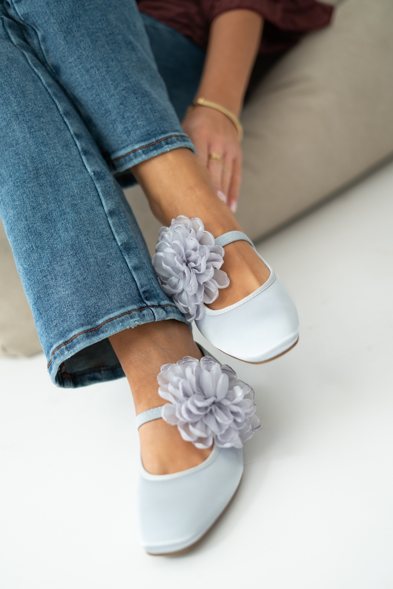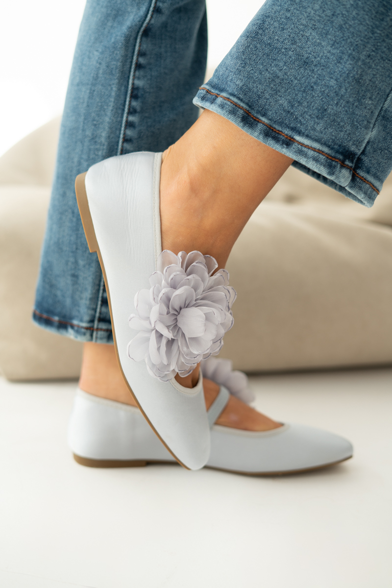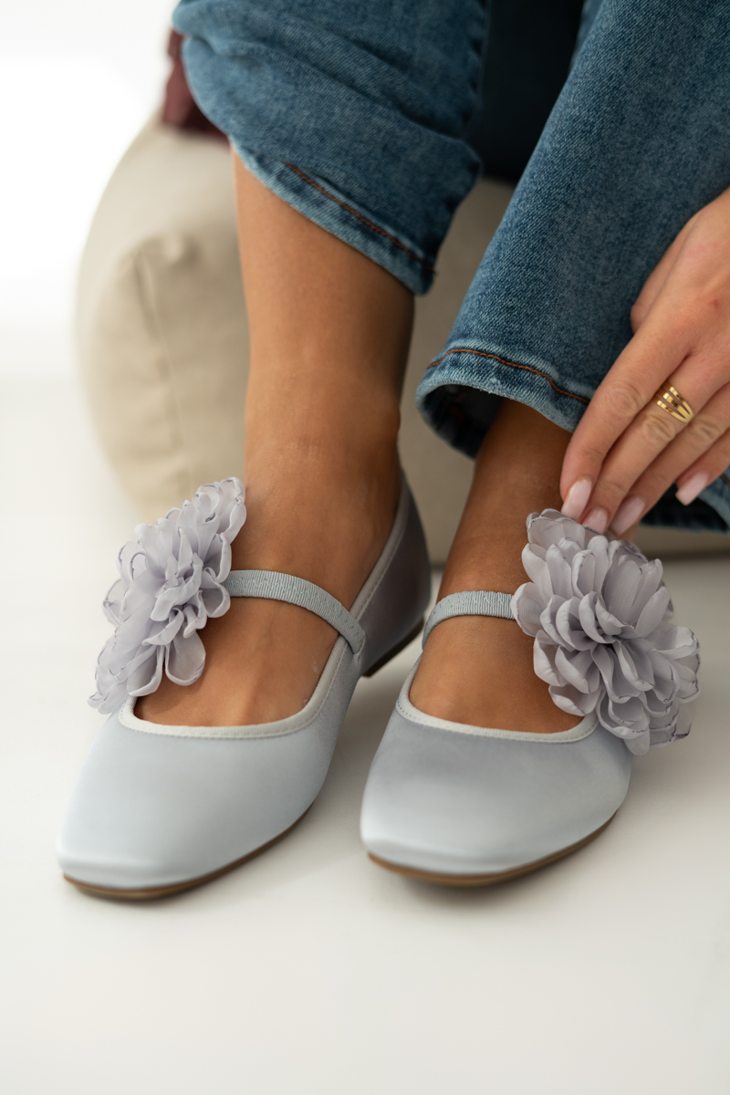 Balerinki z paskiem i ozdobnym kwiatkiem Srebrne – Irelora