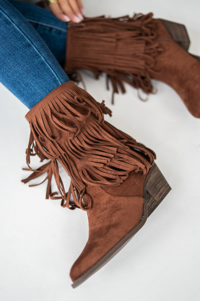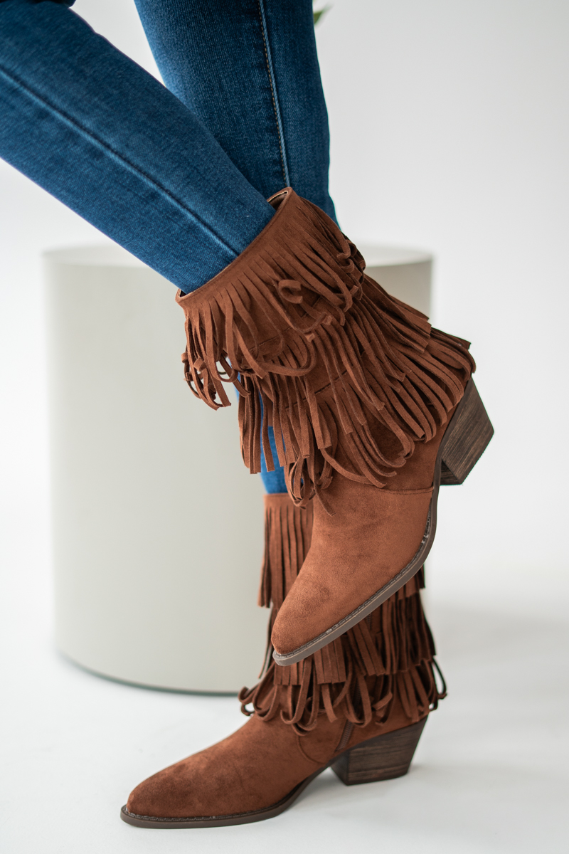 Kowbojki z frędzlami w stylu western Czekoladowe – Kalivora