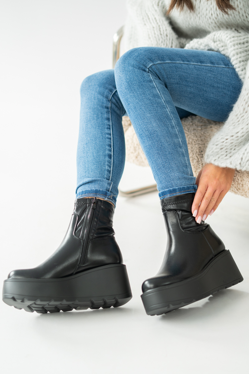 Botki na koturnie w stylu chunky Czarne – Camivra
