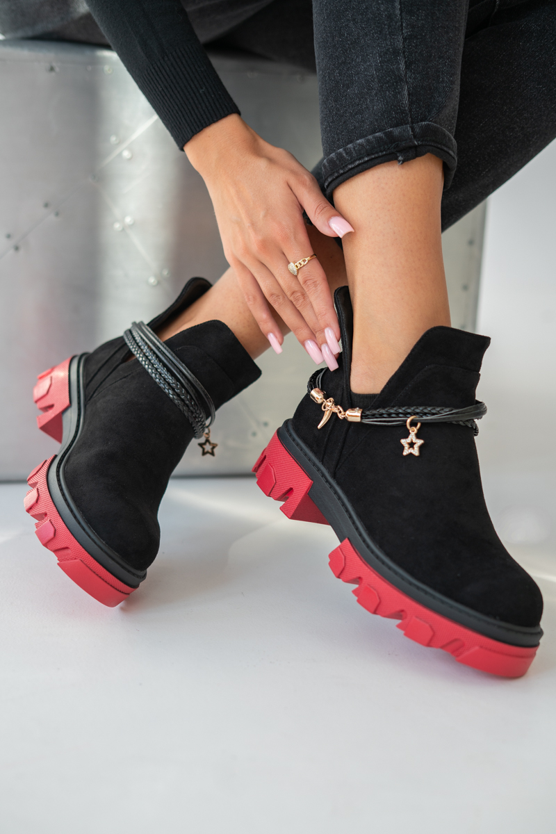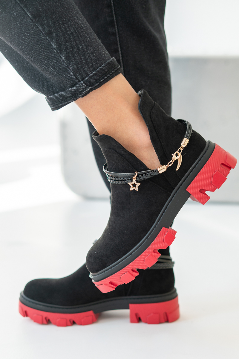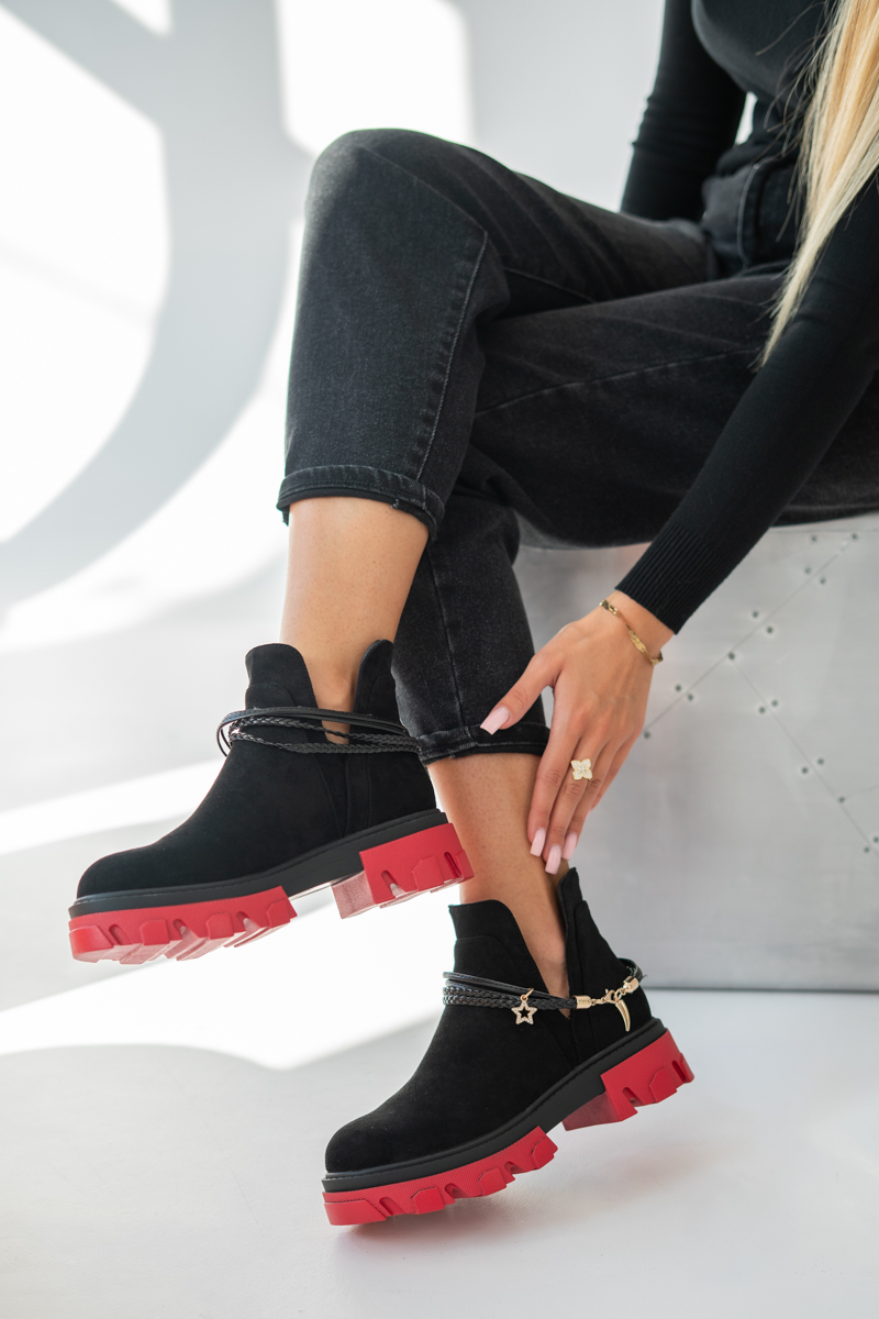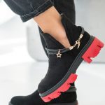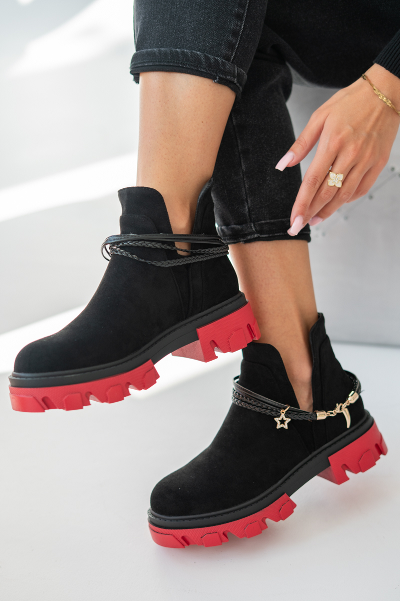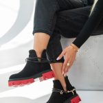 Botki damskie z czerwoną podeszwą Czarne – Rouvelle