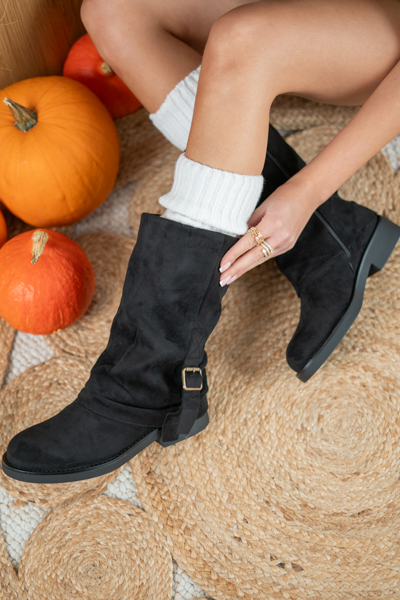 Botki z klamrą na niskim obcasie Czarny – Novyrel