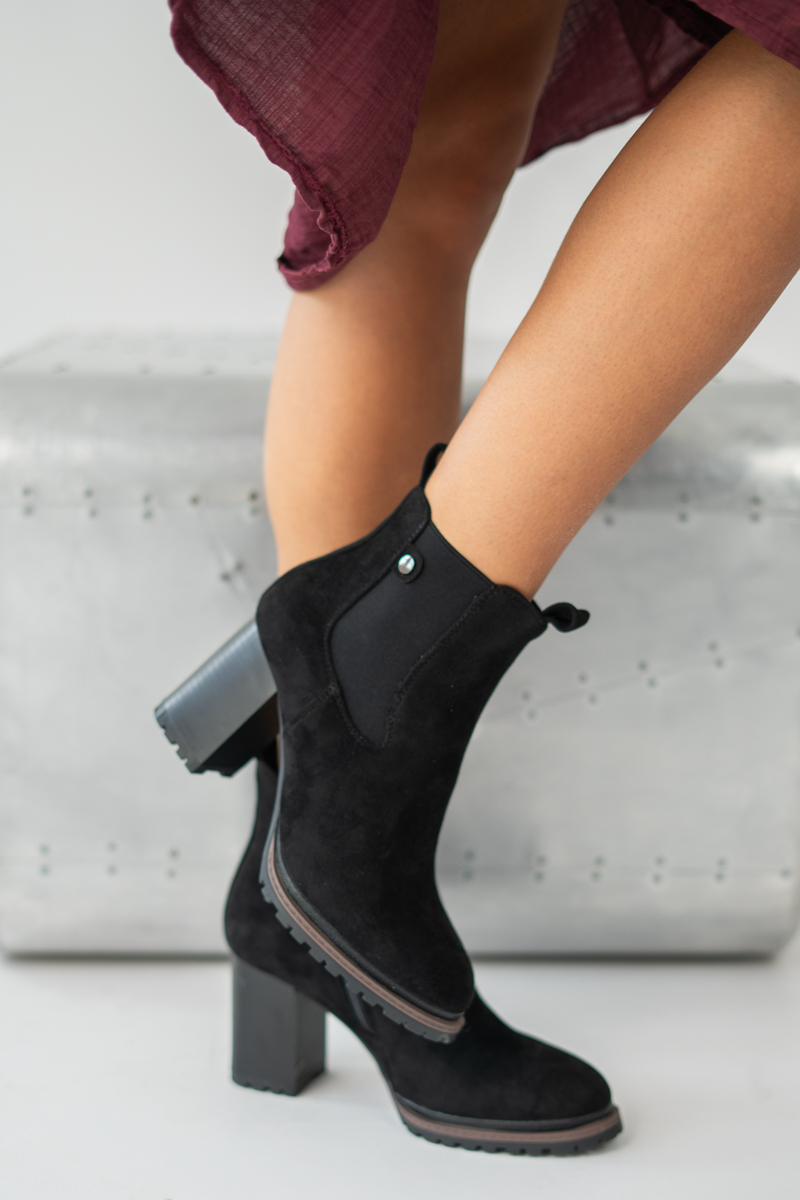 Botki zamszowe na słupku z ozdobnym akcentem Czarny – Sparkiva