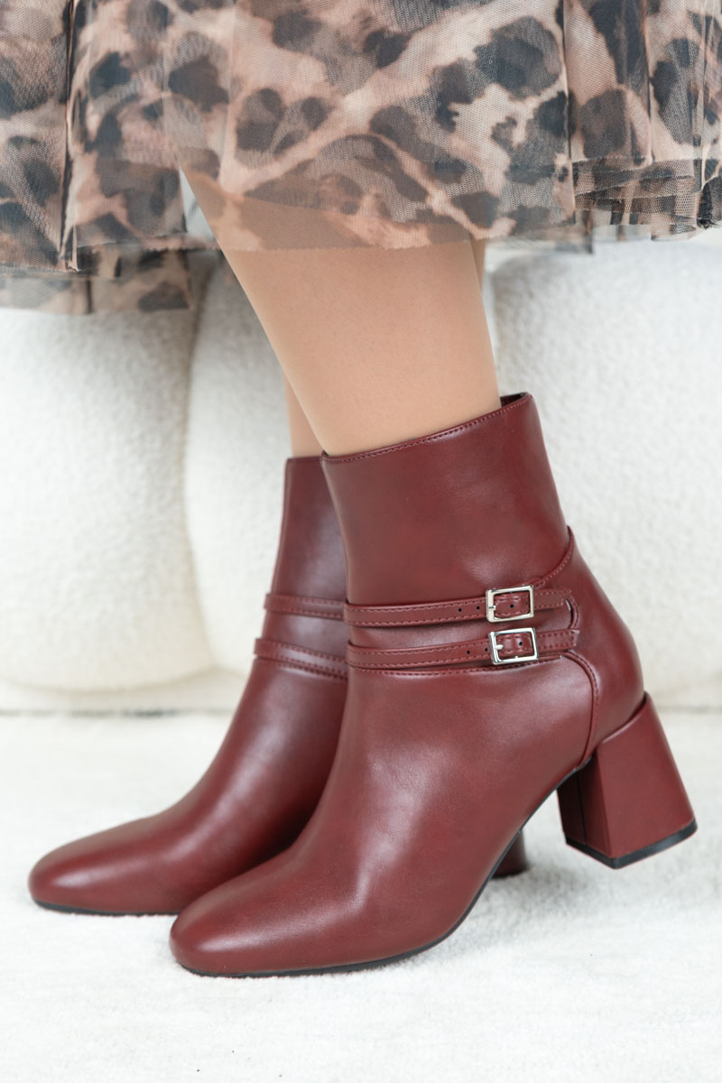 Eleganckie botki na słupku Perynna w głębokim bordowym kolorze to stylowa propozycja na chłodniejsze dni. Wykonane z gładkiego materiału o delikatnym połysku prezentują klasyczny fason, który z łatwością dopasuje się do wielu outfitów. Stabilny słupek zapewnia komfort podczas codziennego noszenia, a boczny zamek ułatwia szybkie zakładanie. Subtelne paski z metalicznymi klamrami dodają butom eleganckiego charakteru. To idealny wybór do sukienek, spódnic i dopracowanych miejskich stylizacji, łączący wygodę z szykownym wyglądem.