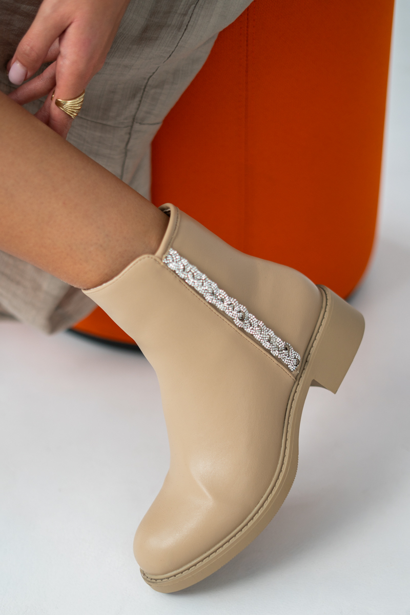 Botki damskie eleganckie z błyszczącym panelem Beżowe – Tharielle