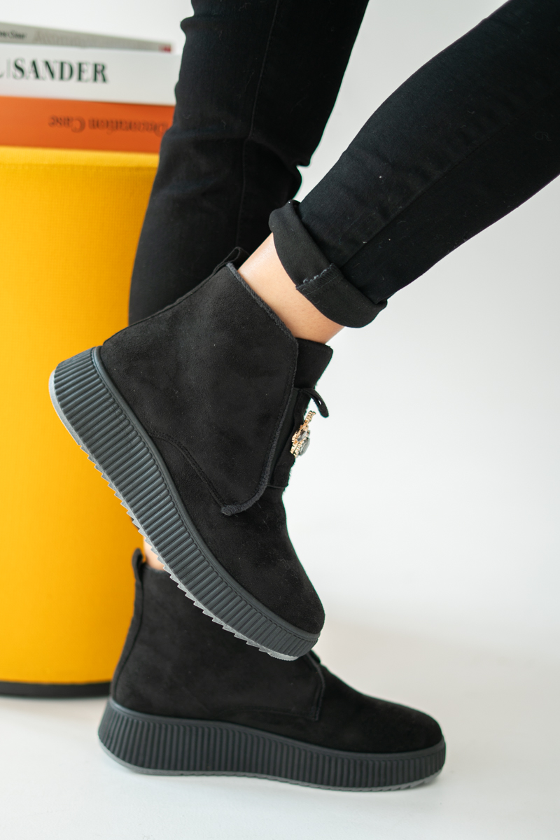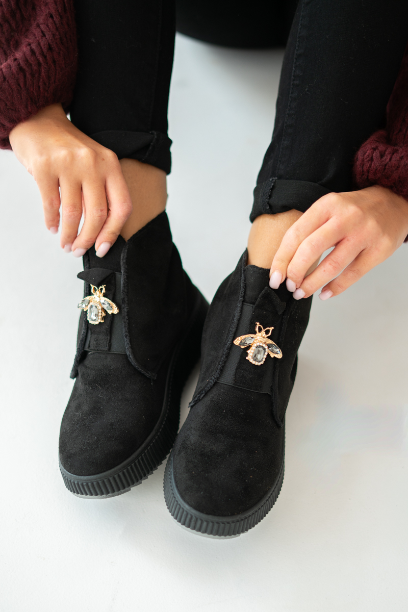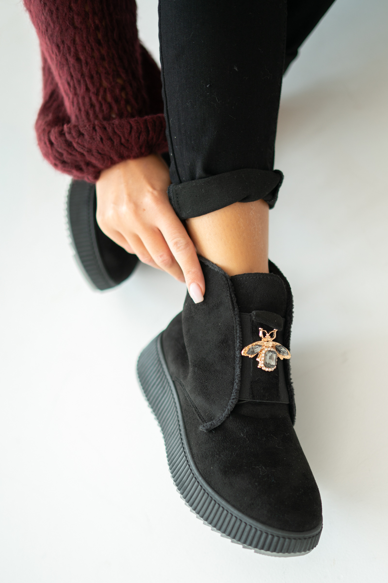 Botki damskie ocieplane z ozdobą Czarne – Coravelle