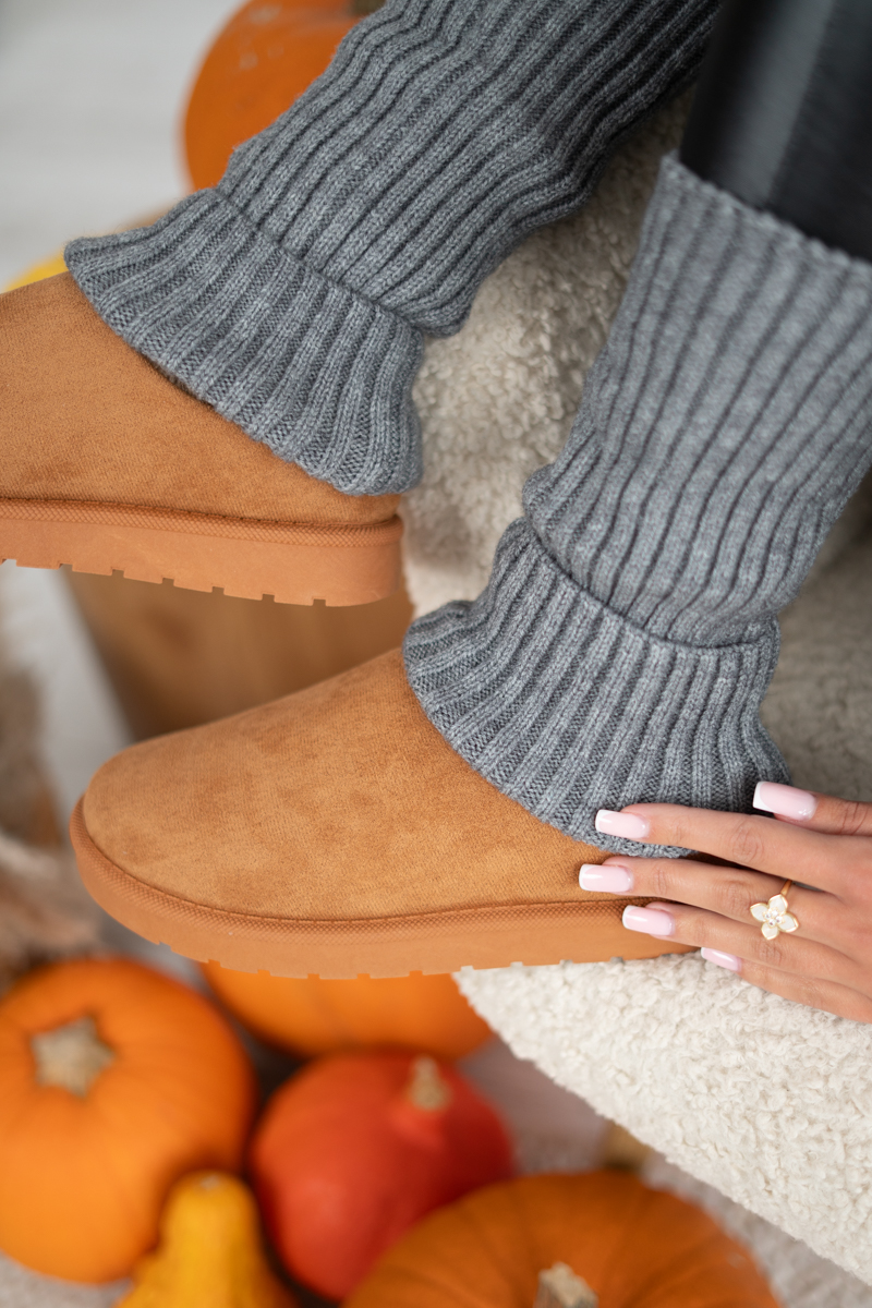 Niskie buty wsuwane z barankiem Camelowy – Lumirra