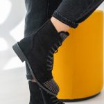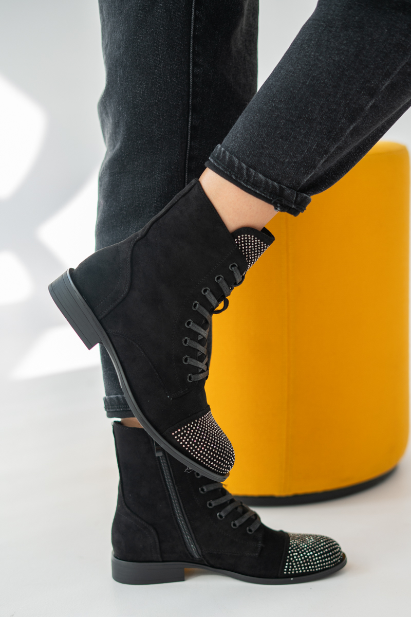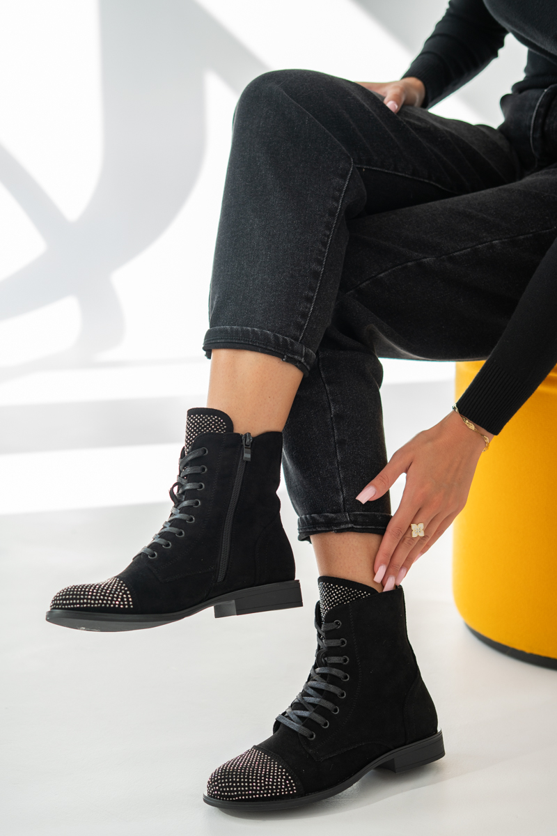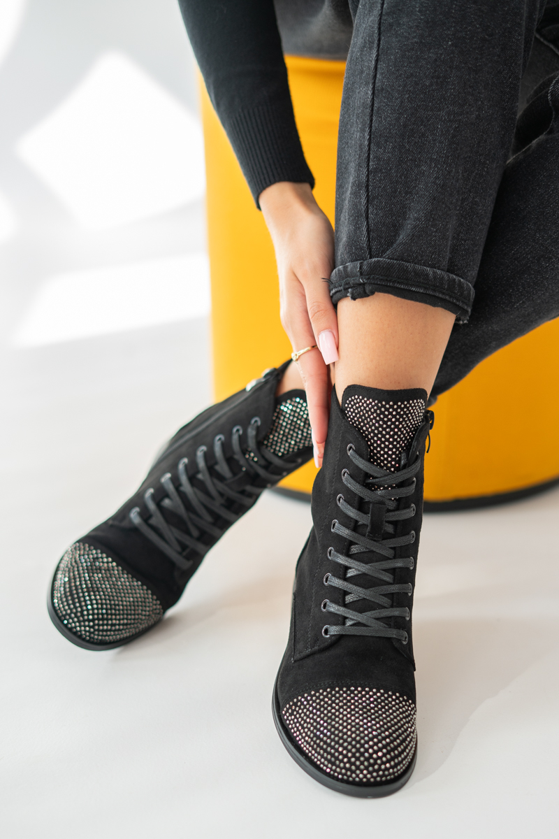 Botki sznurowane z kryształkami Czarne – Korallia