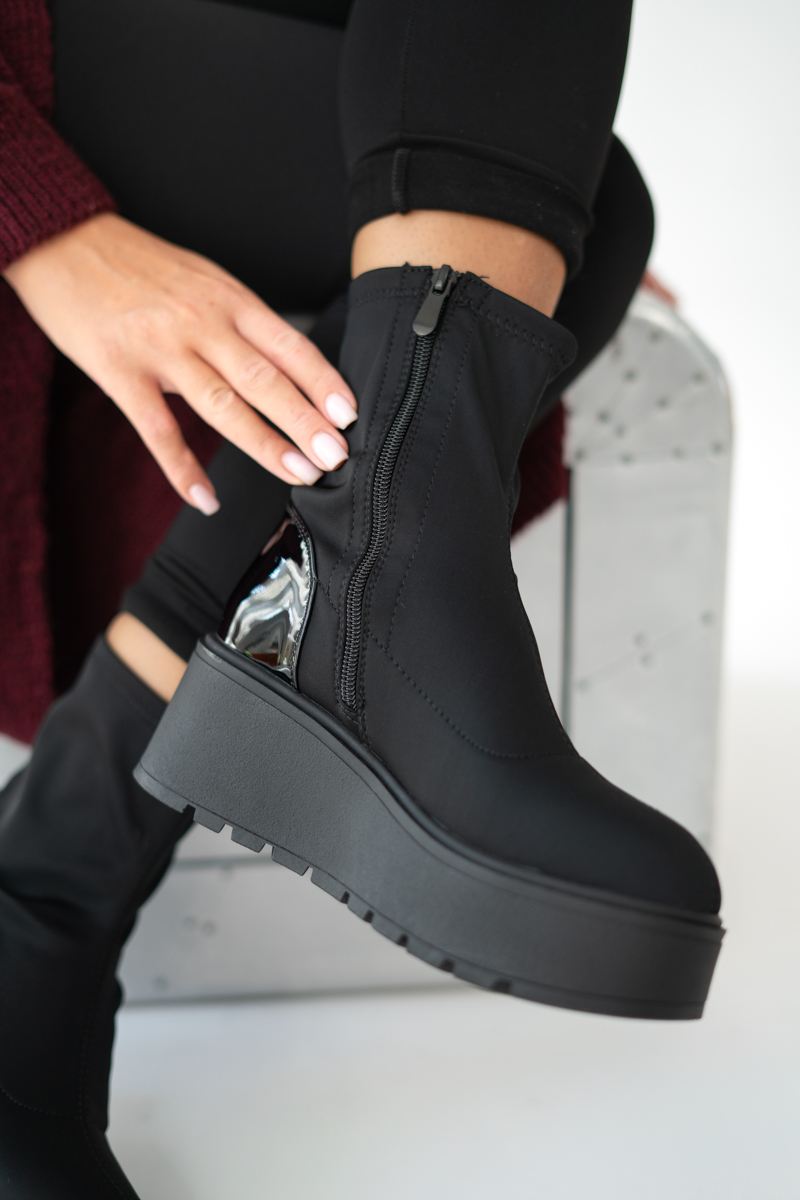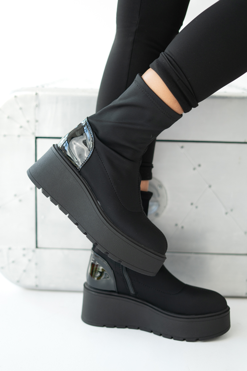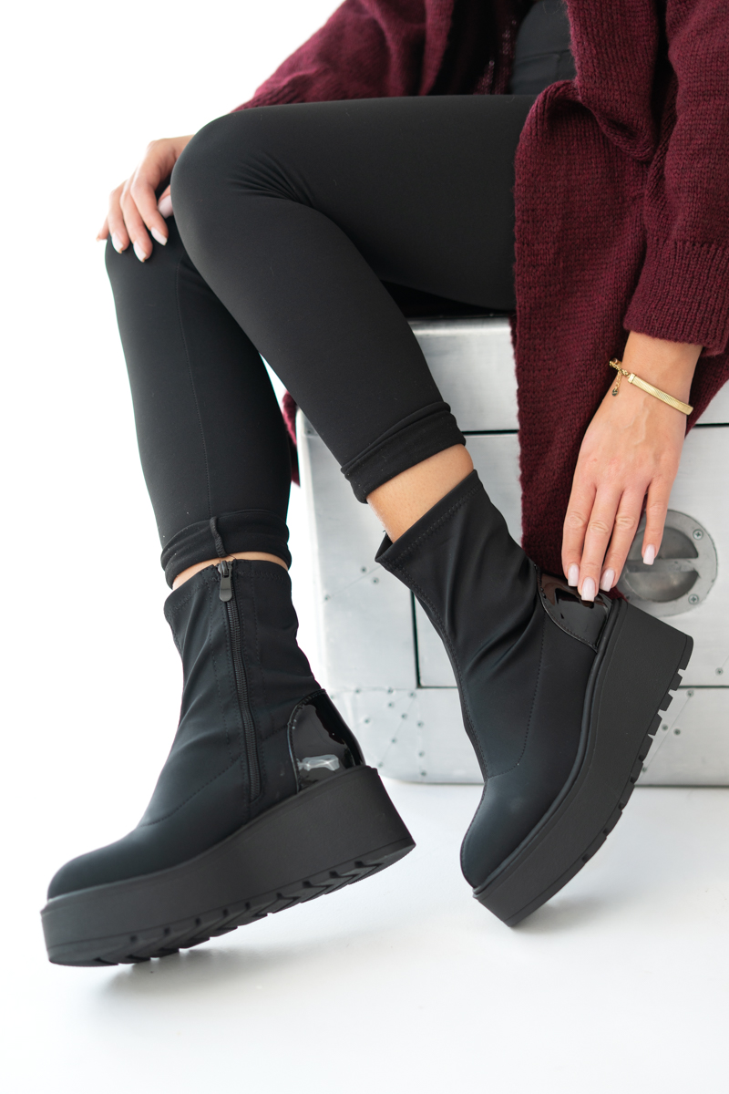 Botki na Wysokiej Platformie ze Skarpetkową Cholewką Czarne – Aurivelle