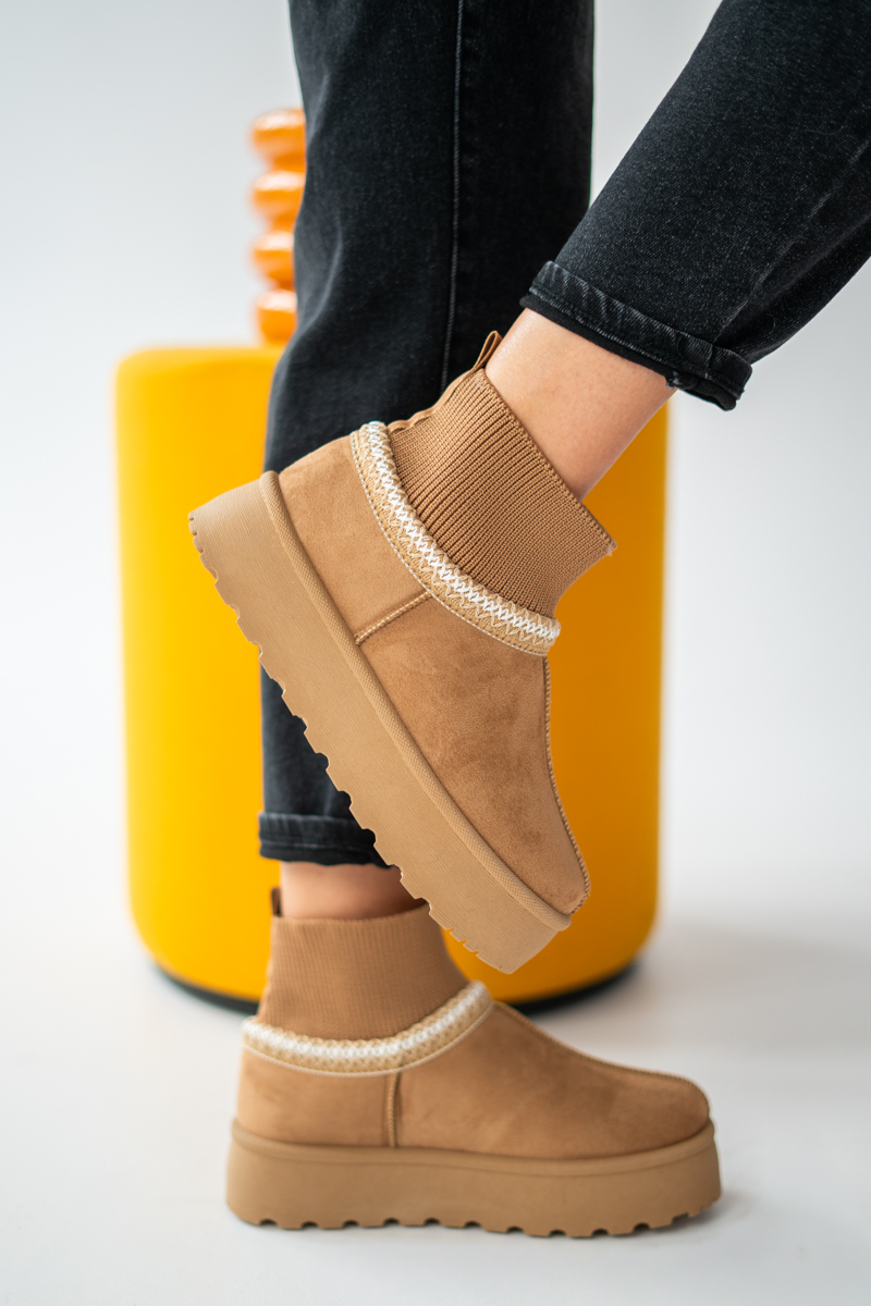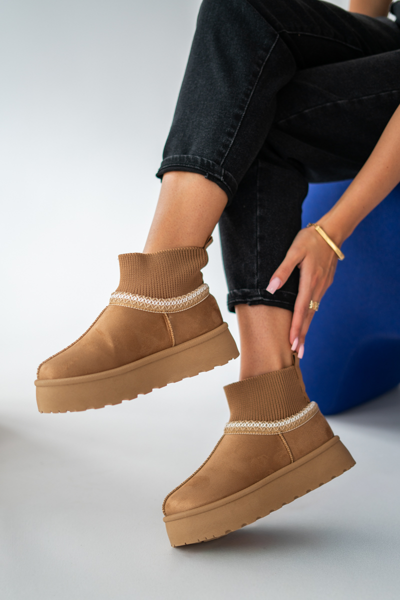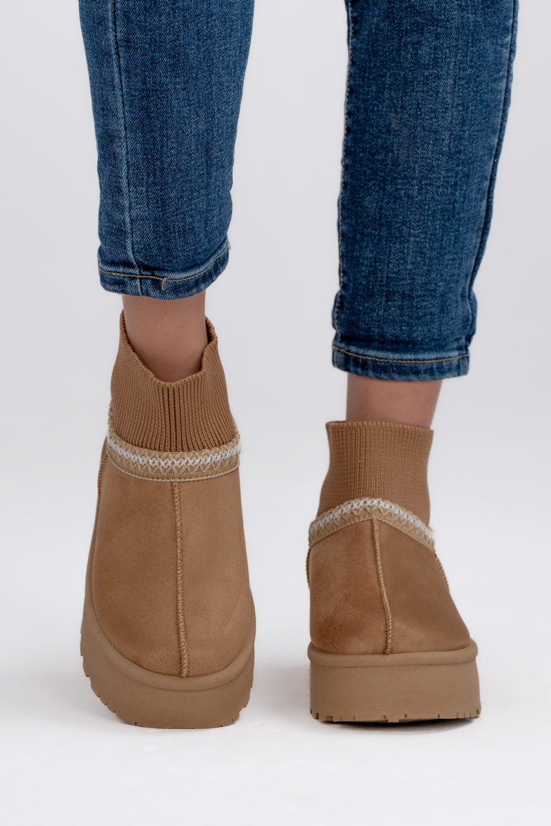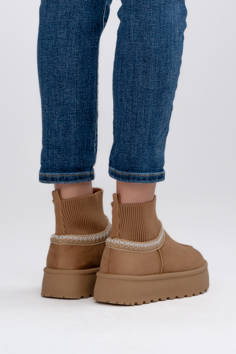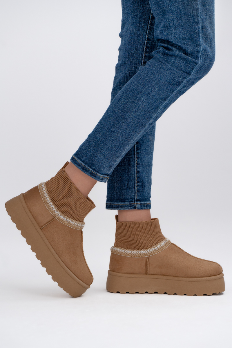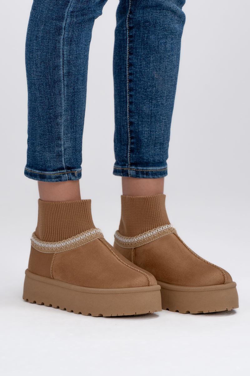 Śniegowce z elastyczną cholewką na platformie Camelowe – Tarissa