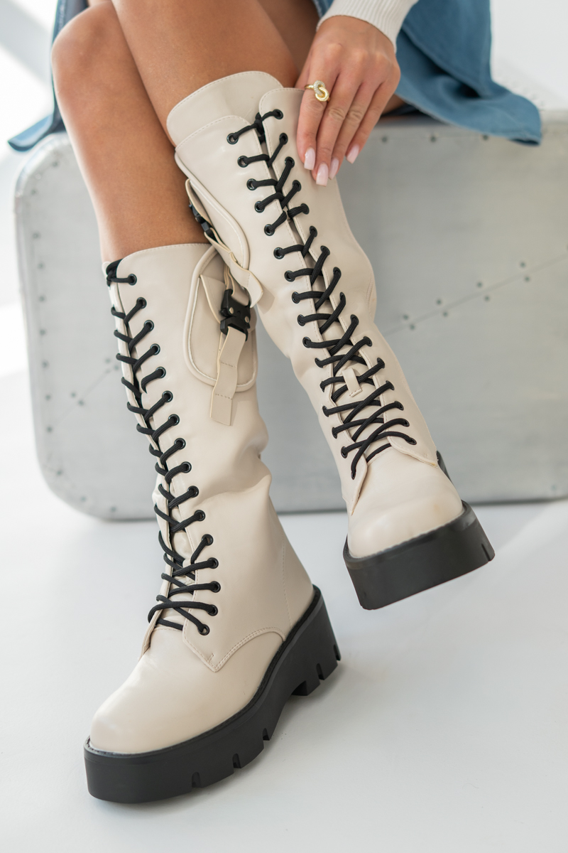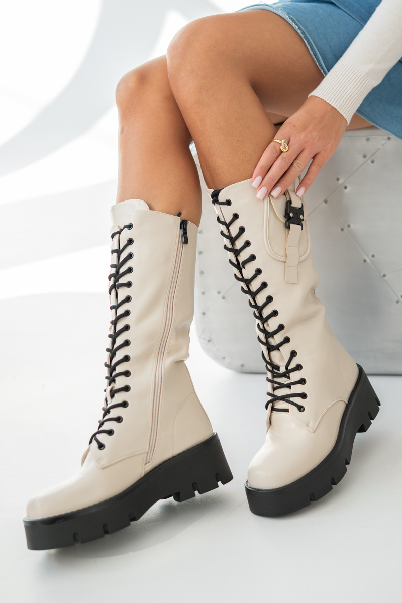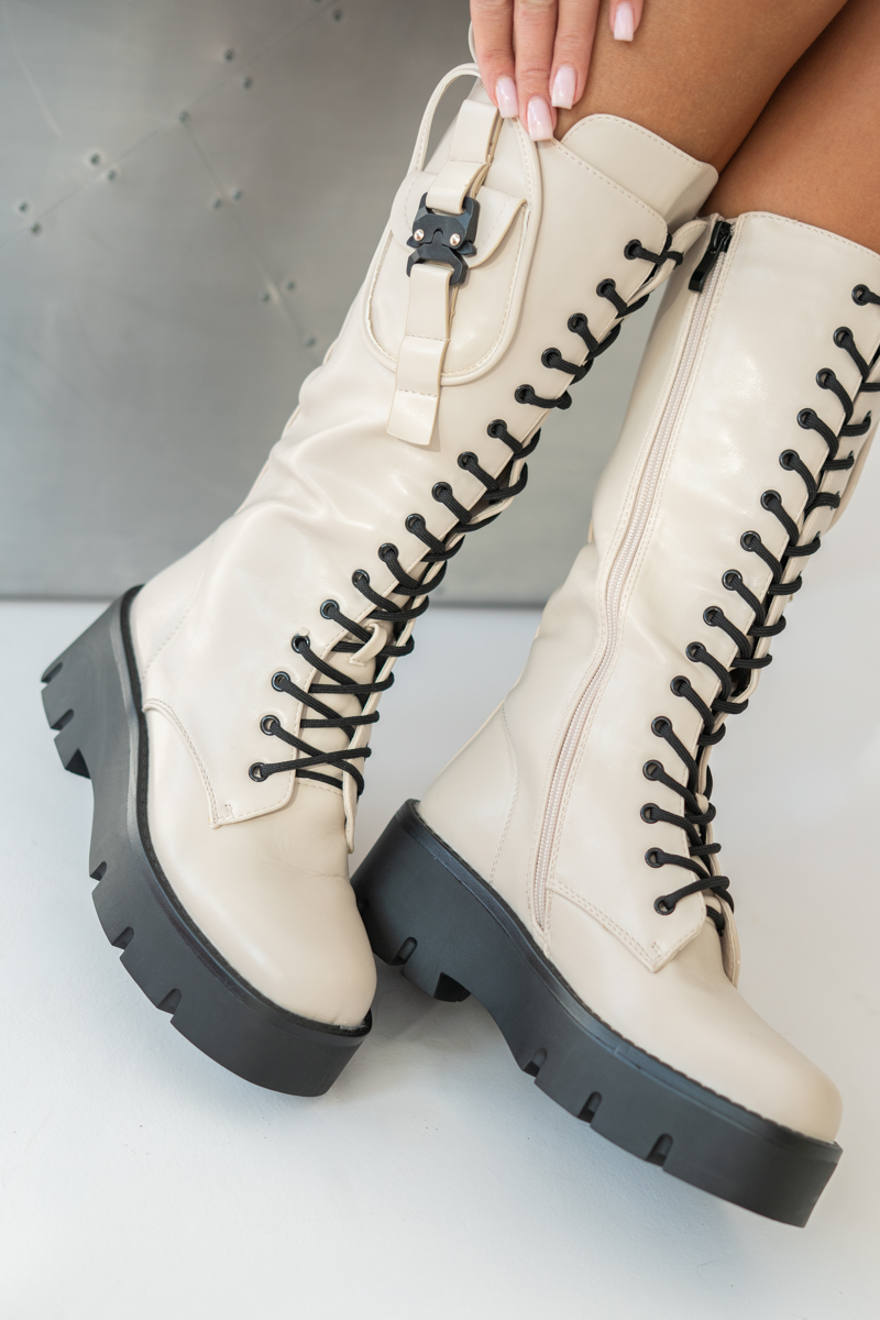 Botki martensy na traperze Beżowe – Solyra