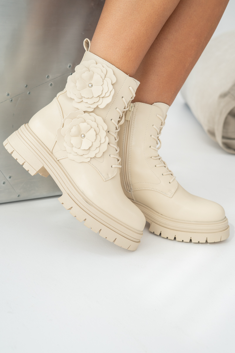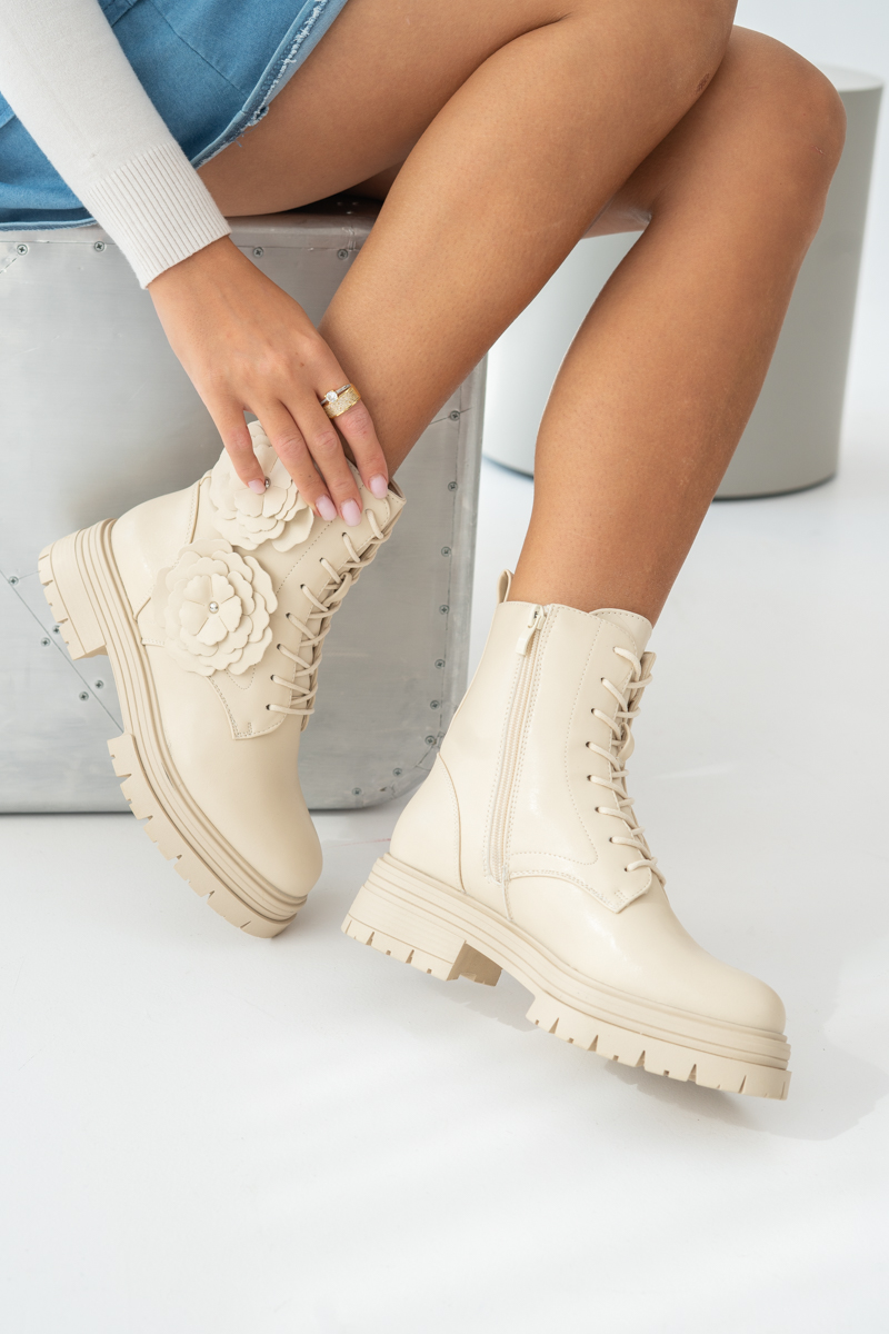 Botki z ozdobnym kwiatem Beżowe – Floratrail