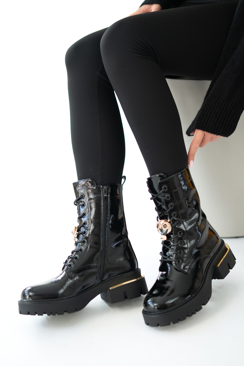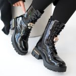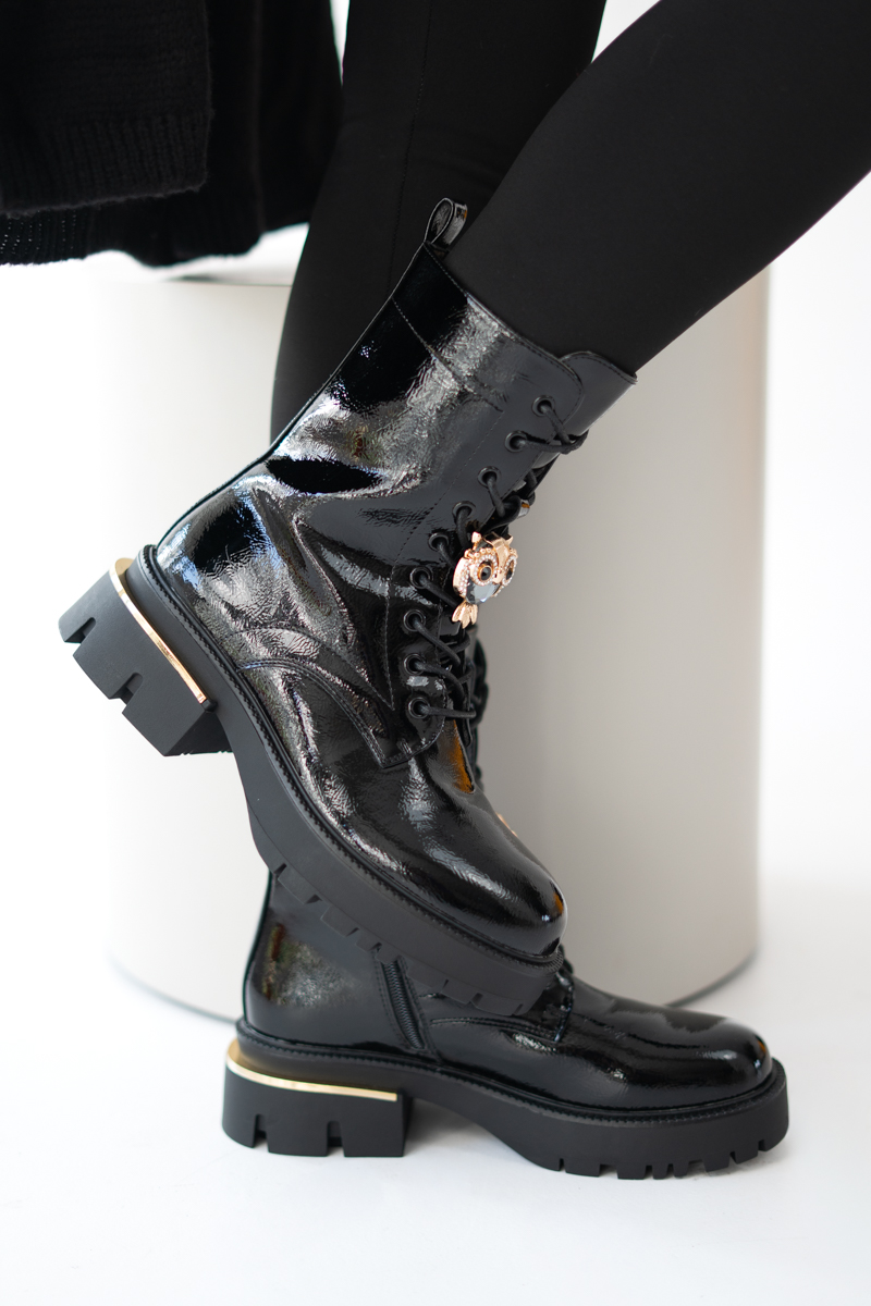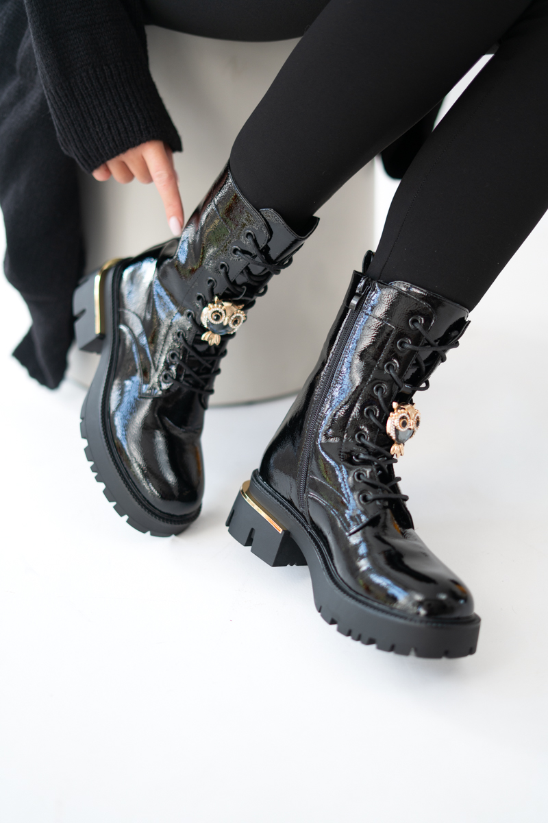 Workery lakierowane sznurowane sowa Czarne – Orvianne