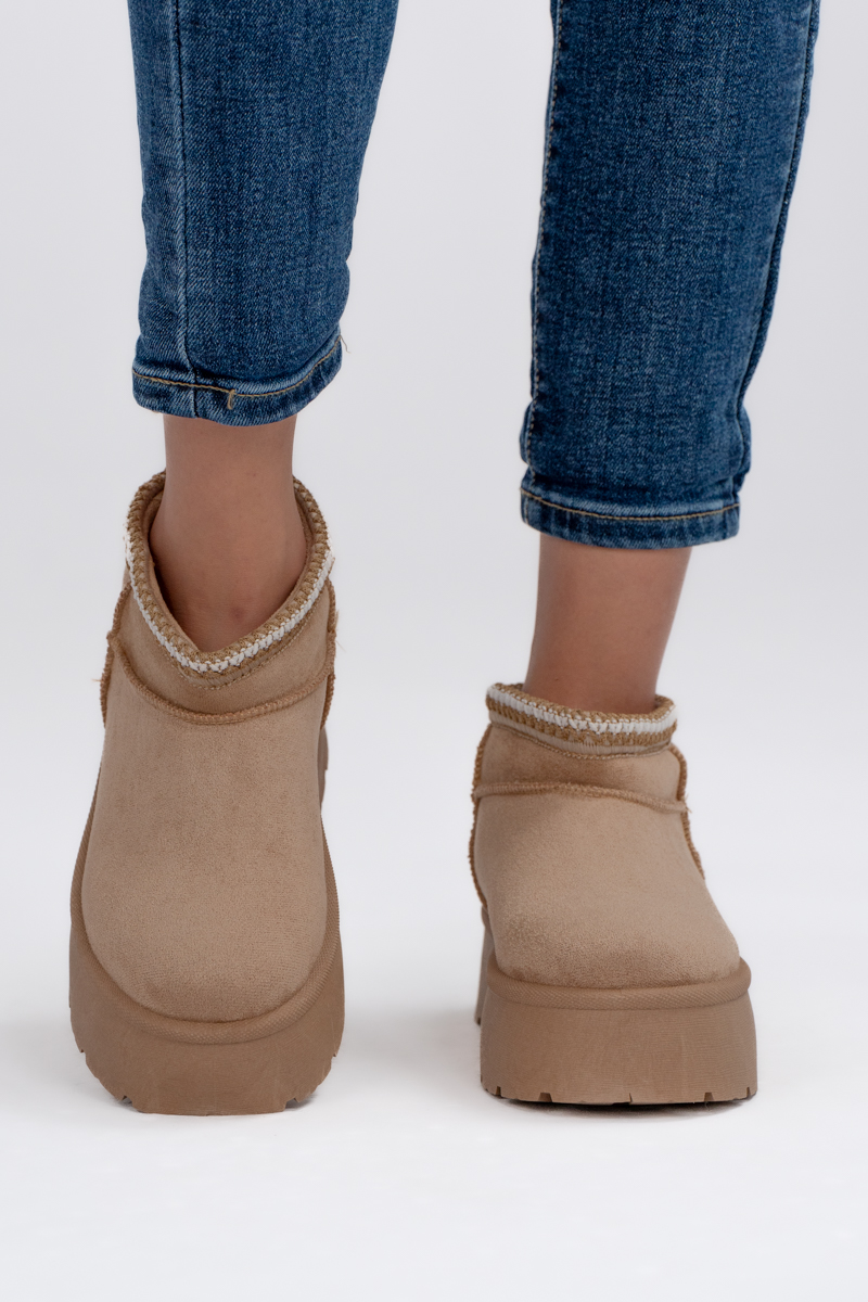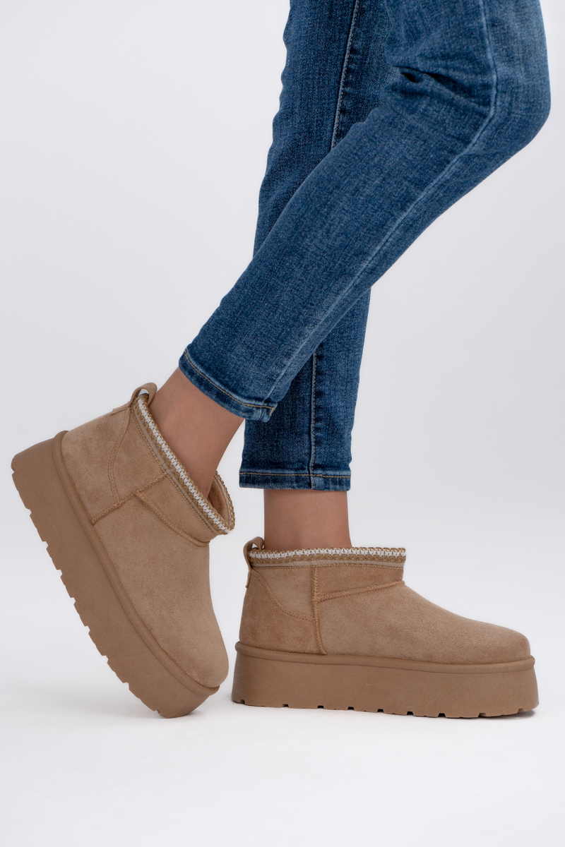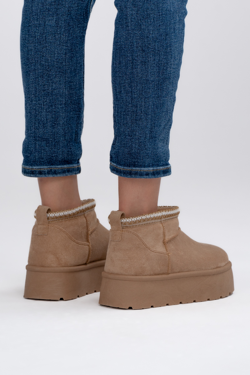 Niskie botki zamszowe z dzianinową cholewką w kolorze fango to praktyczne i stylowe obuwie na chłodniejsze dni. Wykonane z miękkiej ekologicznej skóry zamszowej, gwarantują komfort i modny wygląd. Ocieplane wnętrze dba o ciepło, a elastyczna dzianinowa cholewka dodaje im oryginalności i przytulnego charakteru. Gruba podeszwa z delikatnym bieżnikiem zapewnia stabilność i wygodę podczas codziennego użytkowania. Neutralny odcień fango świetnie komponuje się z różnymi stylizacjami, od jeansów po casualowe sukienki, sprawiając, że botki staną się uniwersalnym i modnym elementem garderoby.