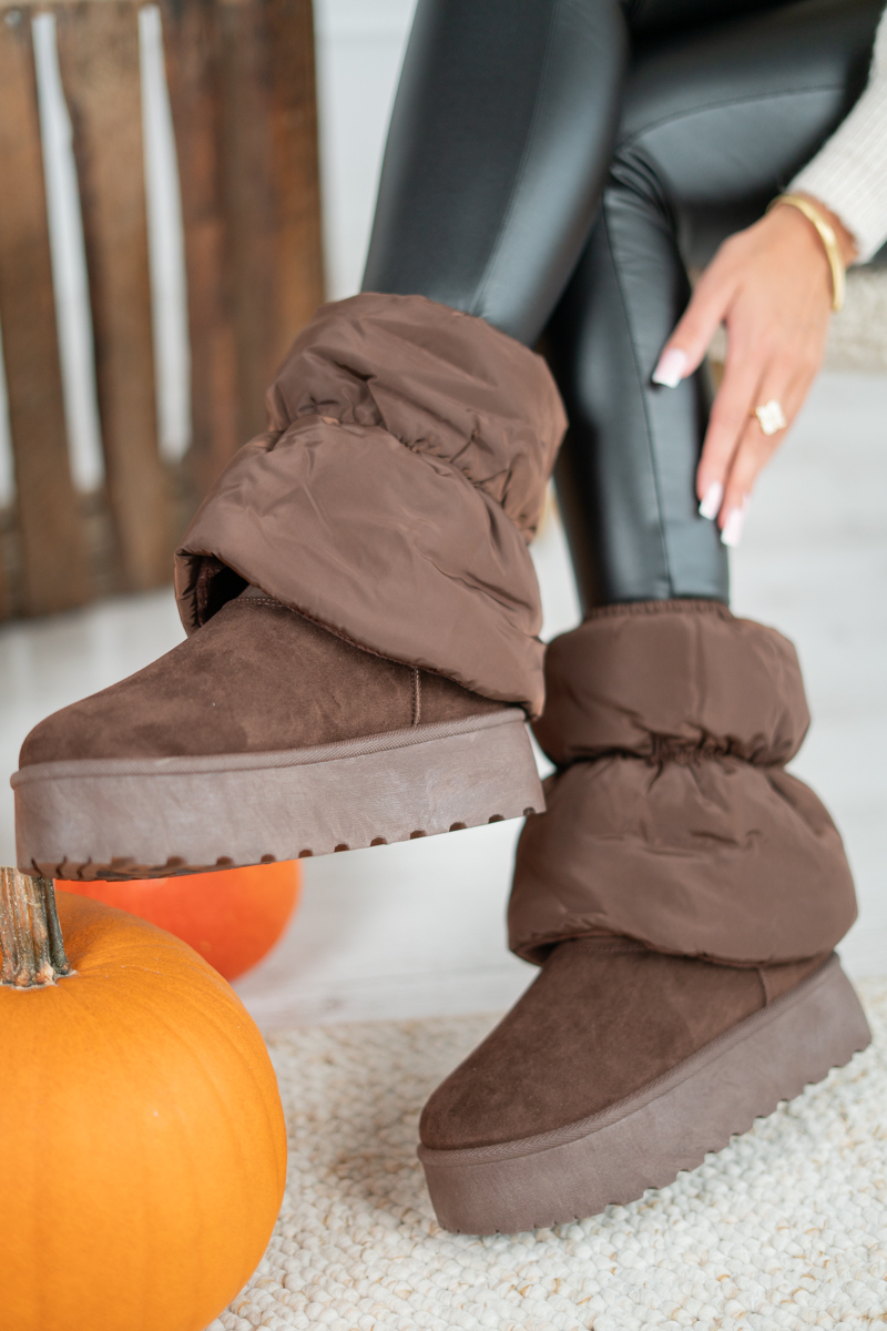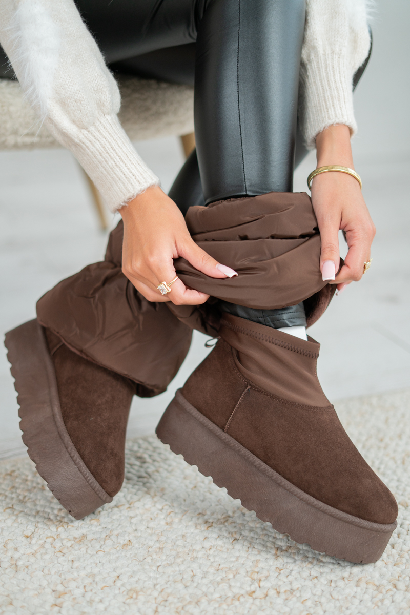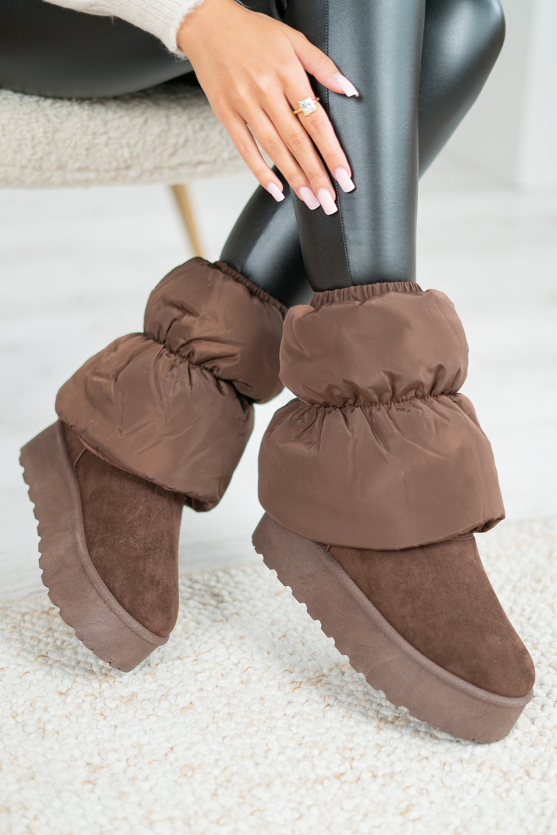 Śniegowce ocieplane na platformie z elastyczną kostką Czekoladowy – Snolira