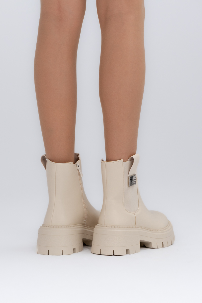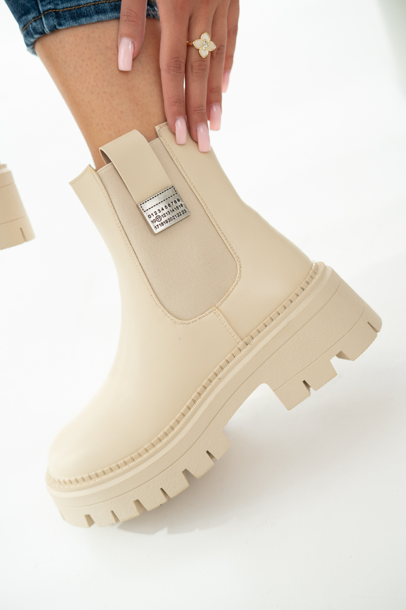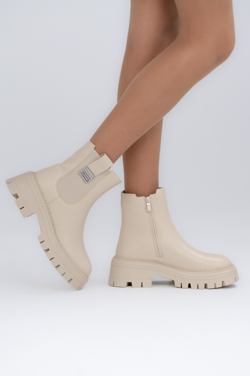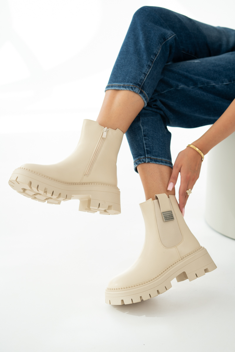 Nowoczesne sztyblety na masywnej platformie Beżowe – Valesin