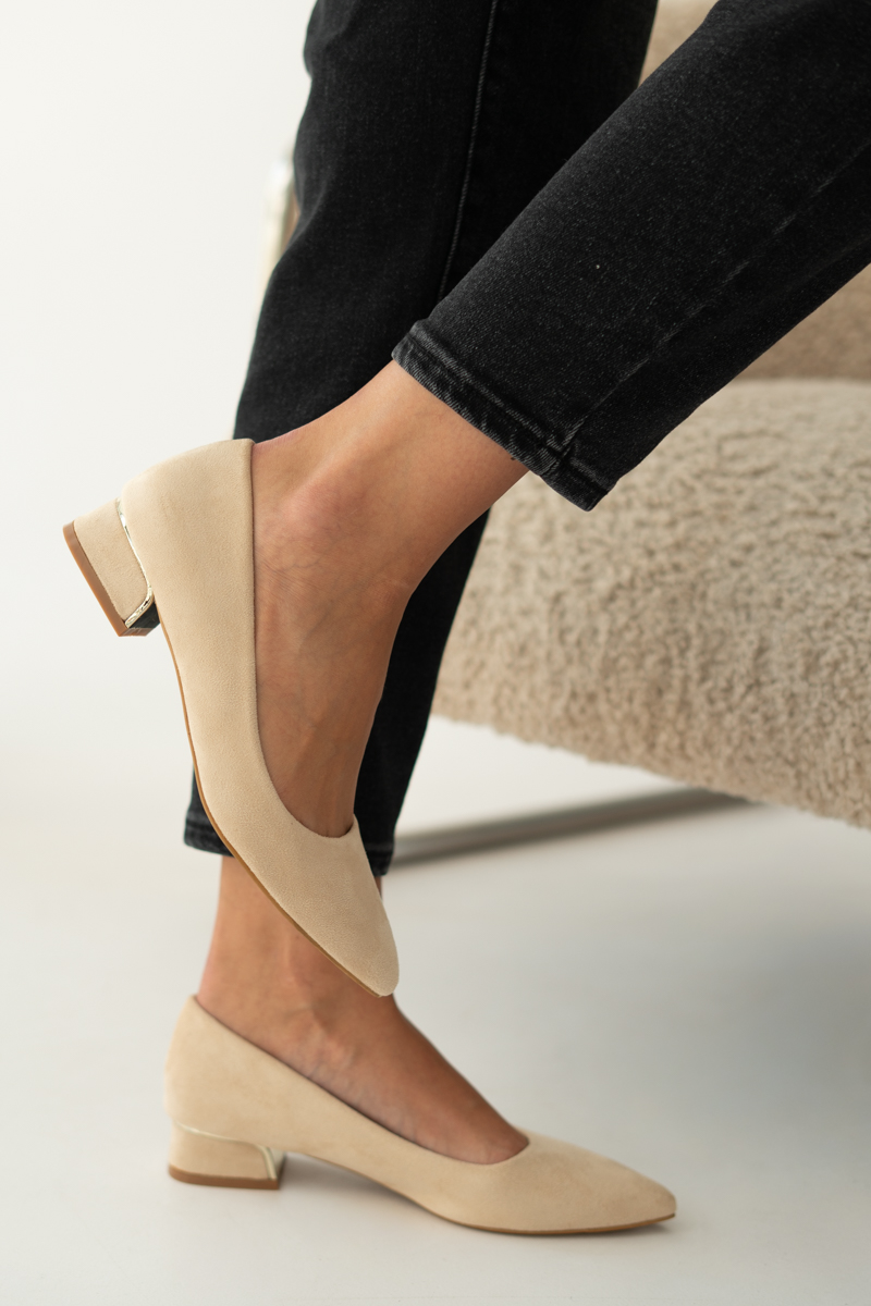 Czółenka na wysokim słupku Beżowe – Estavia