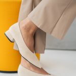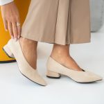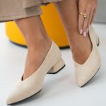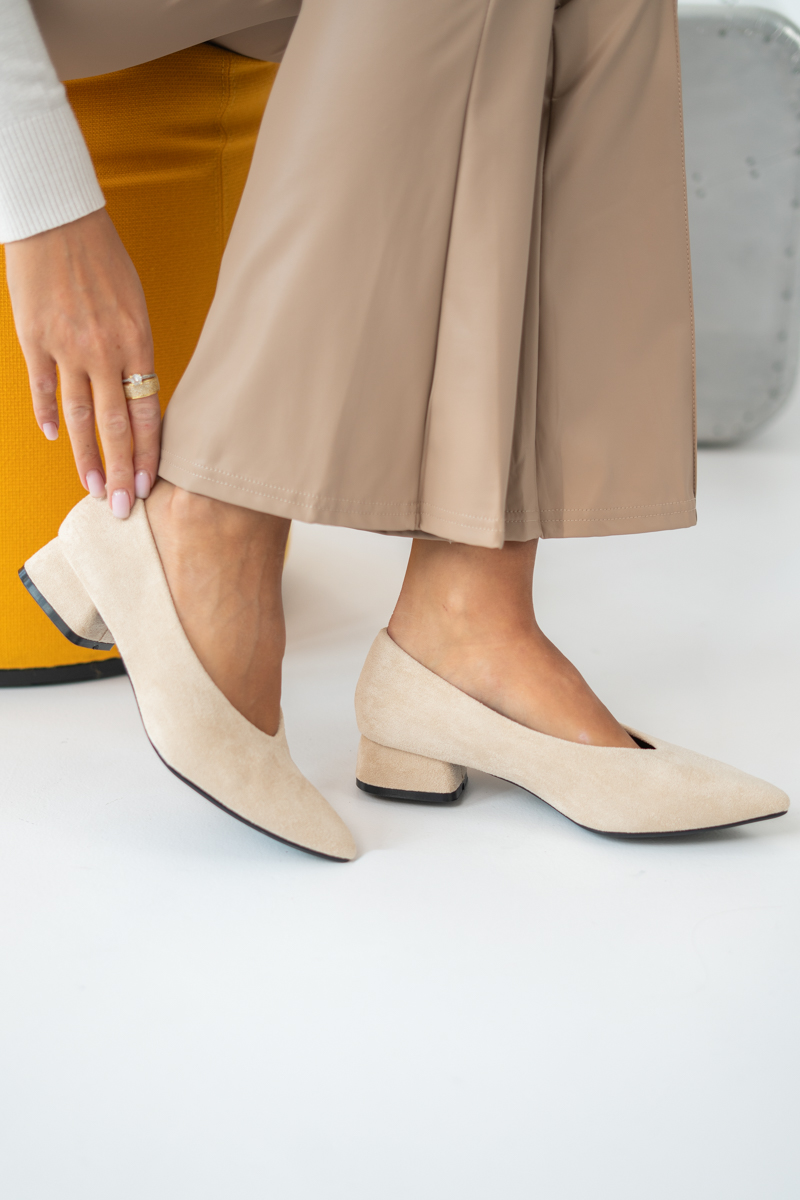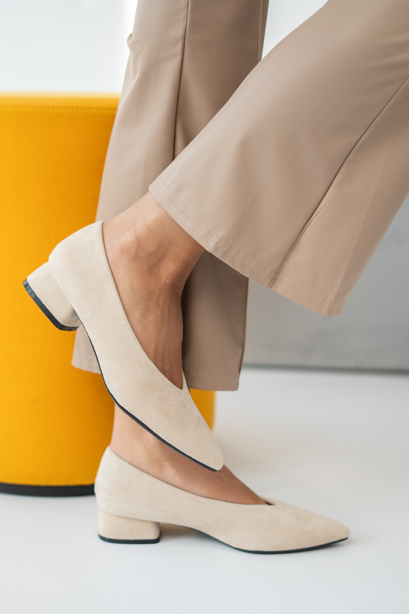 Czółenka zamszowe na niskim słupku Beżowe – Selivra