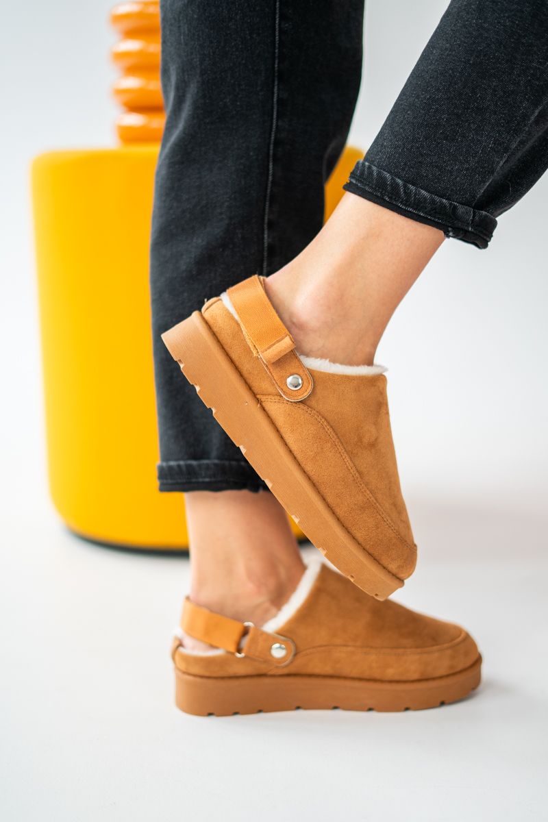Kapcie damskie miękkie w kolorze camelowym marki Snugira to idealny wybór dla osób ceniących wygodę i ciepło w domowym zaciszu. Wykonane z przyjemnego w dotyku, zamszowego materiału i ocieplone miękkim kożuszkiem wewnątrz, zapewniają komfort nawet w chłodniejsze dni. Stabilna, lekko podwyższona podeszwa gwarantuje wygodę chodzenia i izolację od zimnego podłoża, a klasyczny camelowy odcień nadaje im modnego charakteru. To praktyczne i stylowe kapcie, które sprawią, że każdy krok w domu będzie wyjątkowo przyjemny. Idealne na prezent lub jako codzienny dodatek do relaksu.