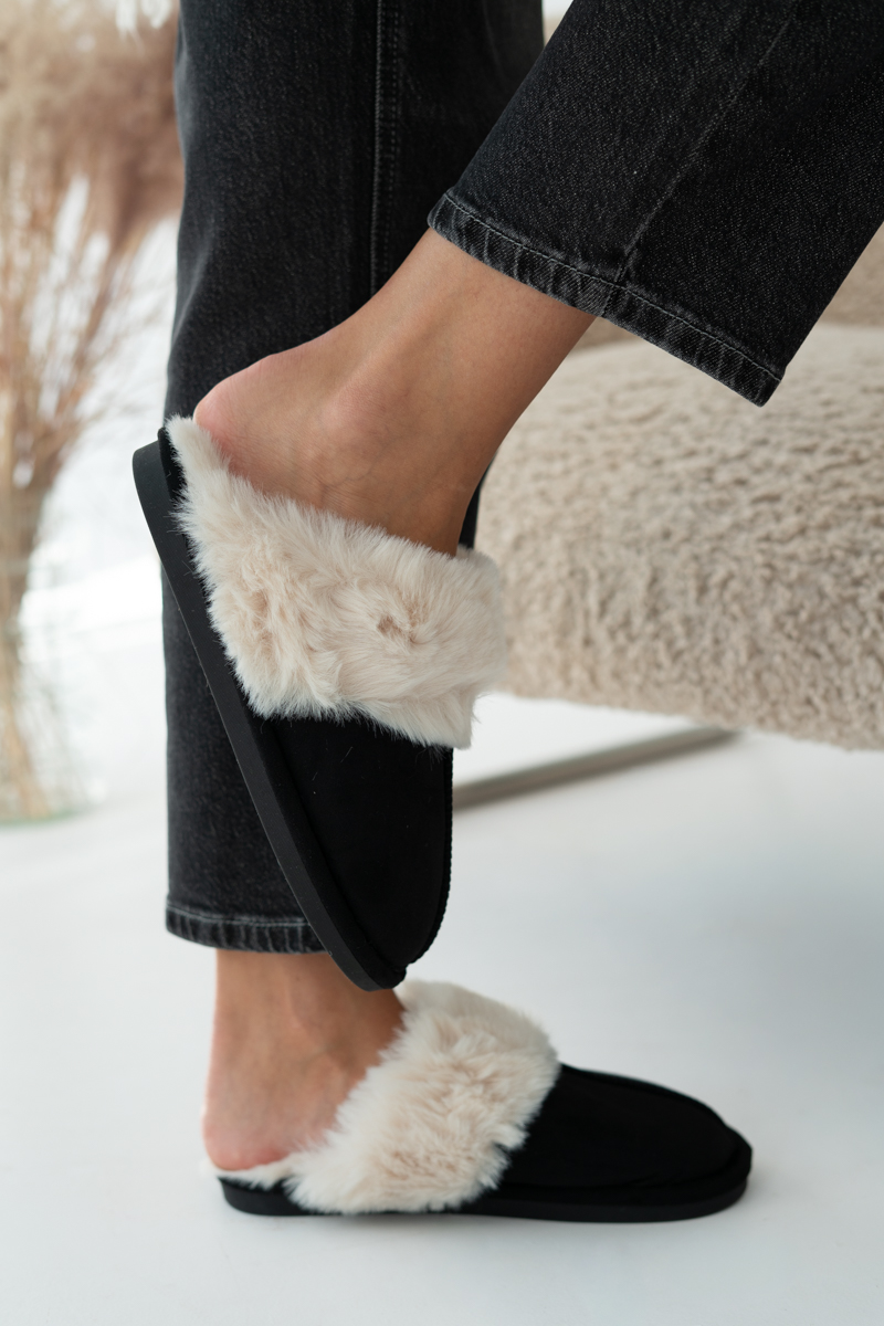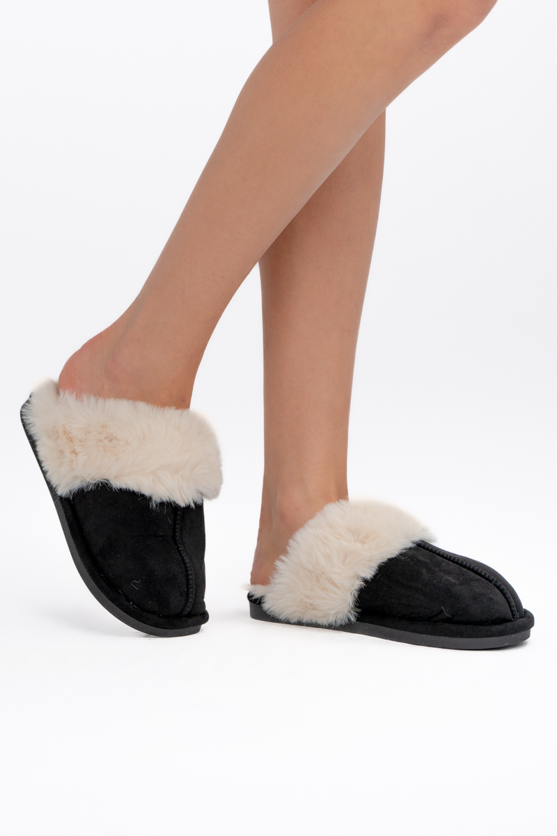 Kapcie wsuwane z futerkiem Czarne – Isyrelle