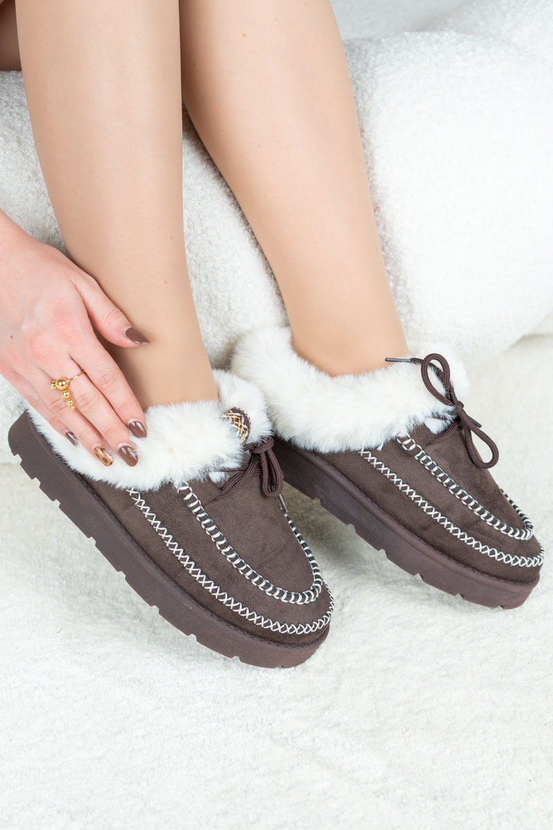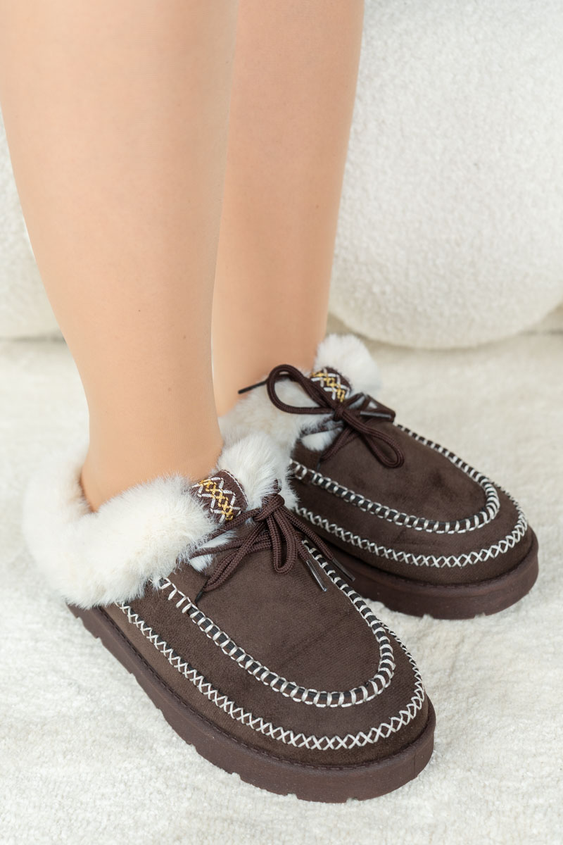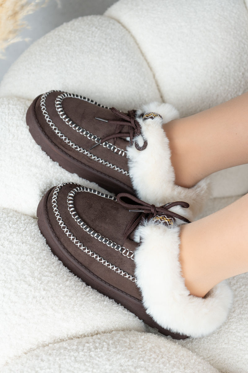 Wsuwane buty z futerkiem Czekoladowe – Elyssira