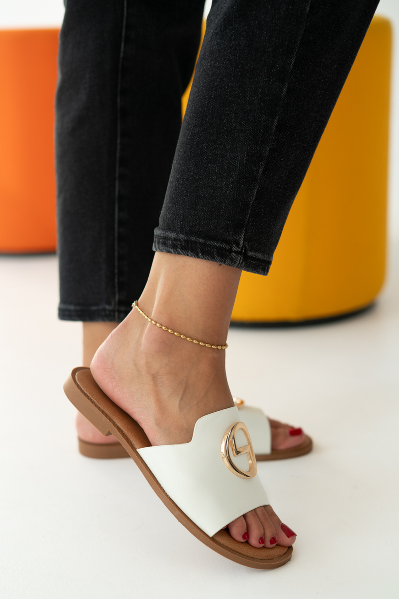 Klapki damskie płaskie z eko skóry Białe – Vivoria