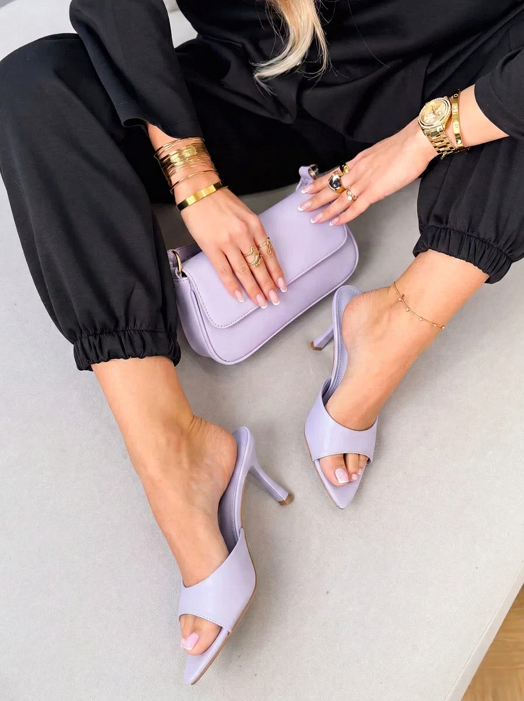 Klapki na obcasie w szpic Liliowe – Sharp Elegance