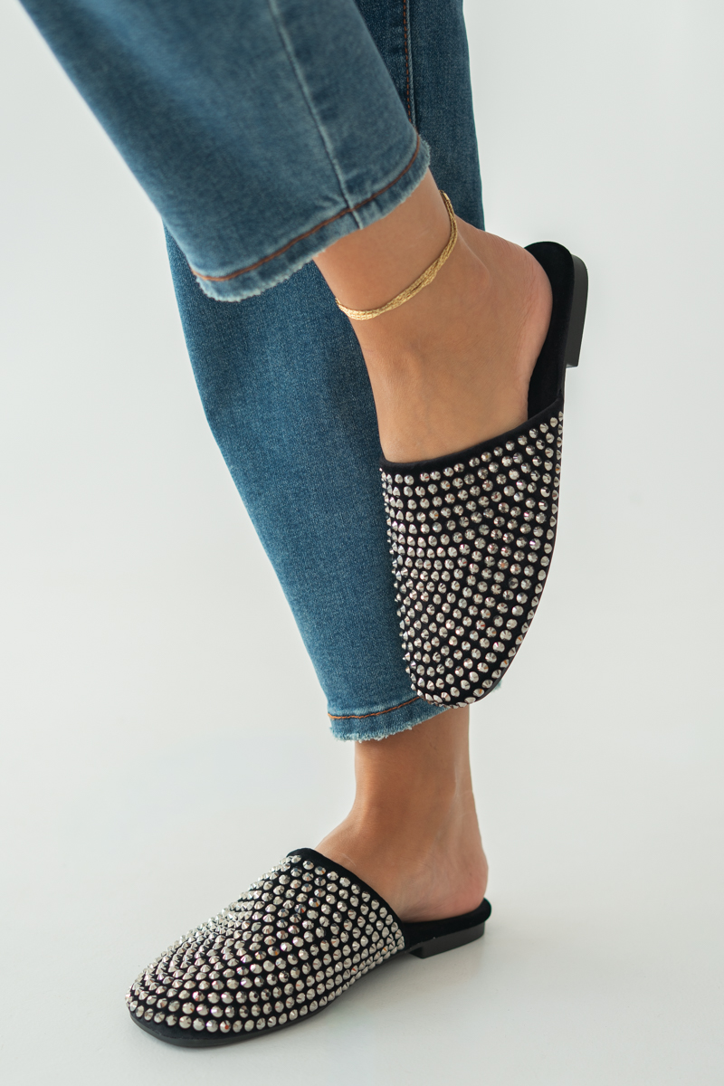 Klapki z cyrkoniami welurowe Czarne – Emerelle