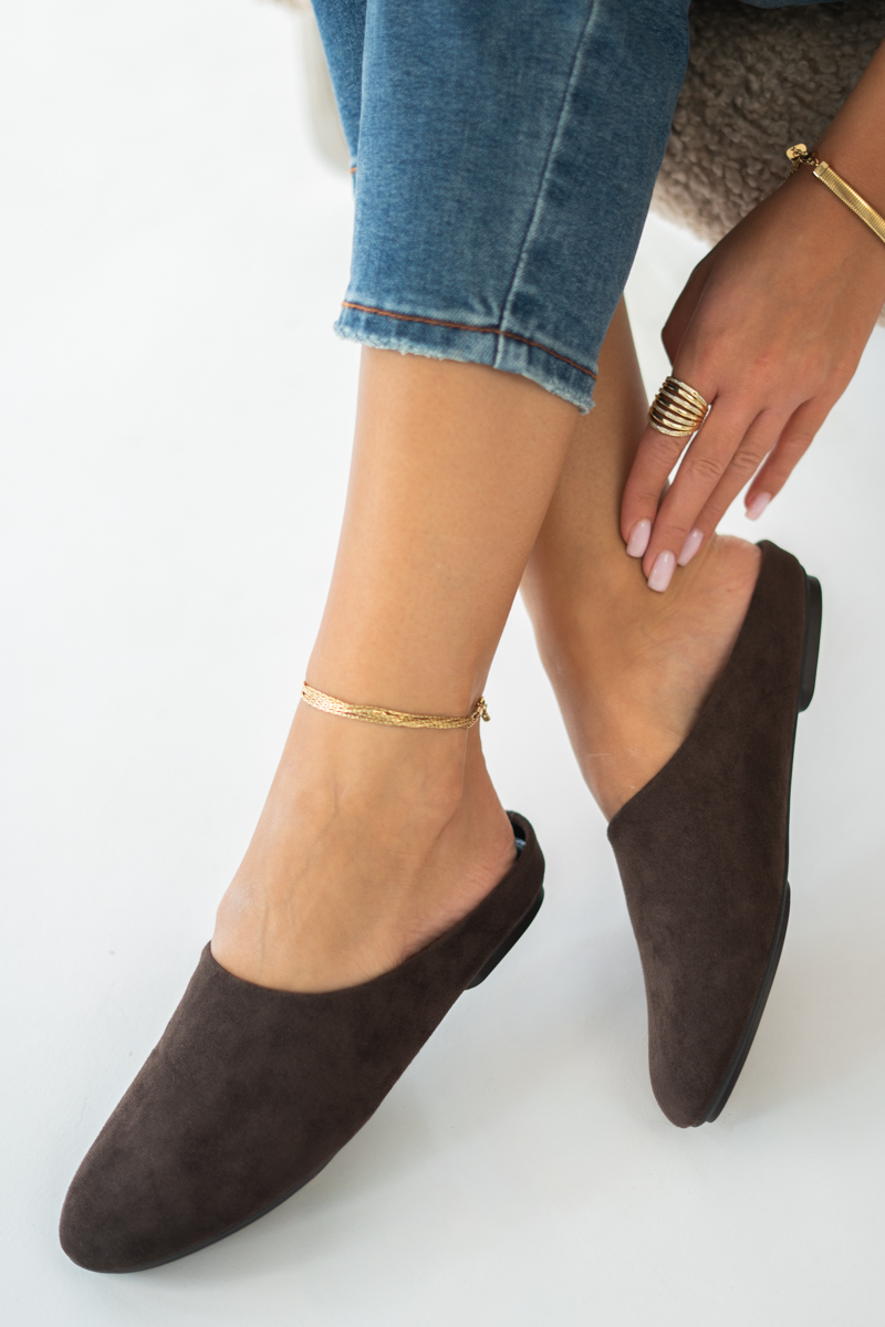 Eleganckie mule wsuwane Czekoladowe – Janelisse