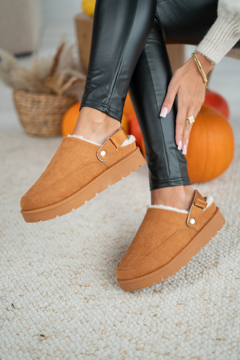Klapki mule ocieplane Melyssa w kolorze camelowym to idealne połączenie ciepła, wygody i modnego designu. Wykonane z miękkiego, zamszowego materiału w ciepłym odcieniu karmelu, prezentują się stylowo i przytulnie. Wnętrze wyłożone gęstym, puszystym futerkiem zapewnia wyjątkowy komfort i ochronę przed chłodem. Solidna, grubsza podeszwa gwarantuje stabilność i wygodę noszenia, zarówno w domu, jak i na zewnątrz. Dodatkowy pasek z boku dodaje całości oryginalnego charakteru. To doskonały wybór dla osób ceniących praktyczne, modne i przyjemnie ciepłe obuwie na co dzień.