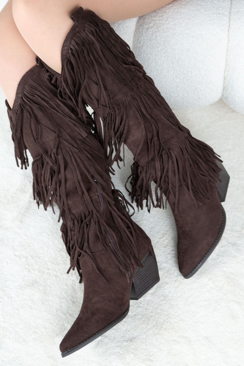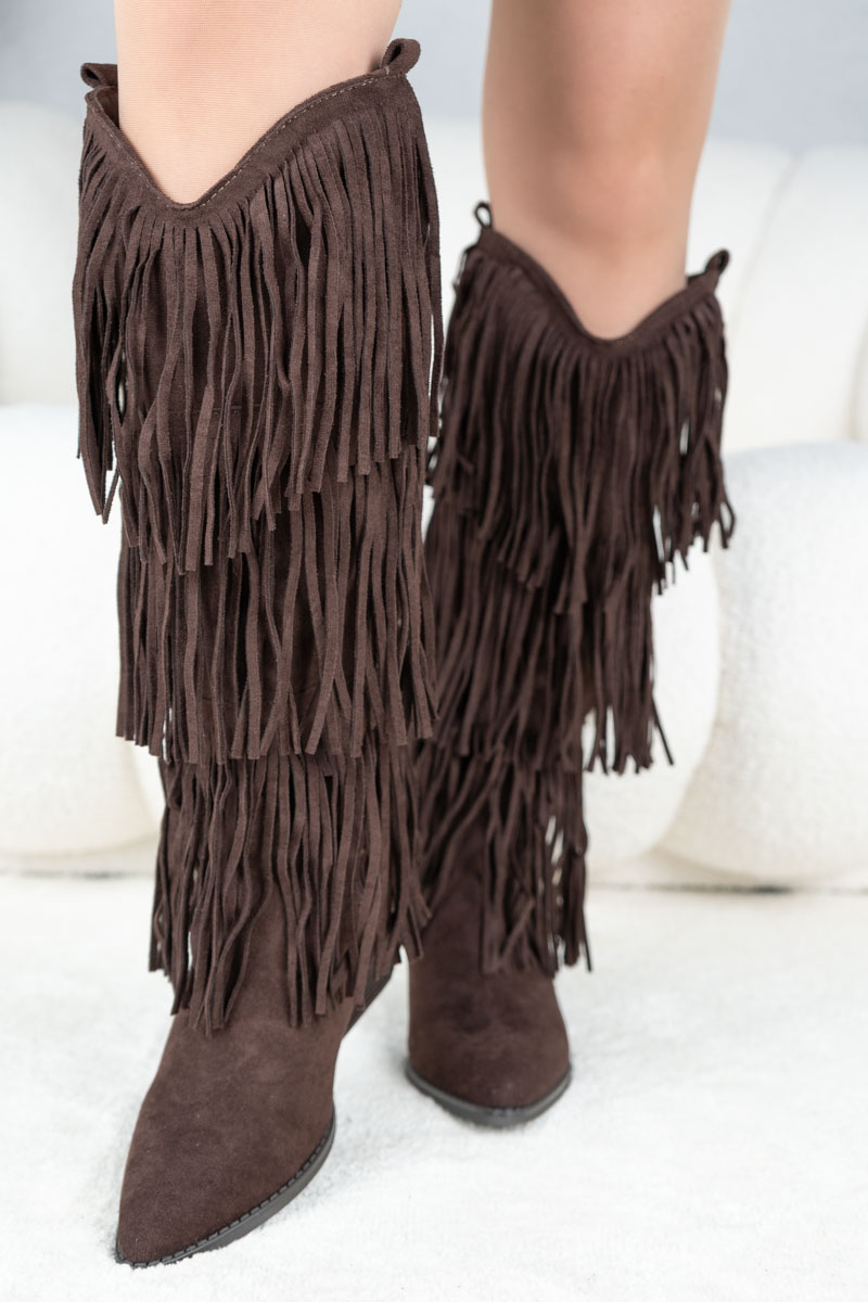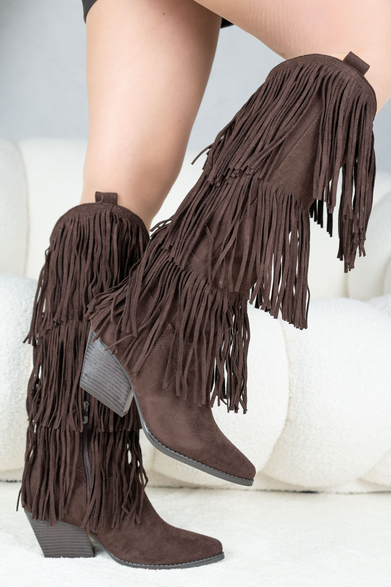 Kowbojskie kozaki z frędzlami Czekoladowe – Corvielle