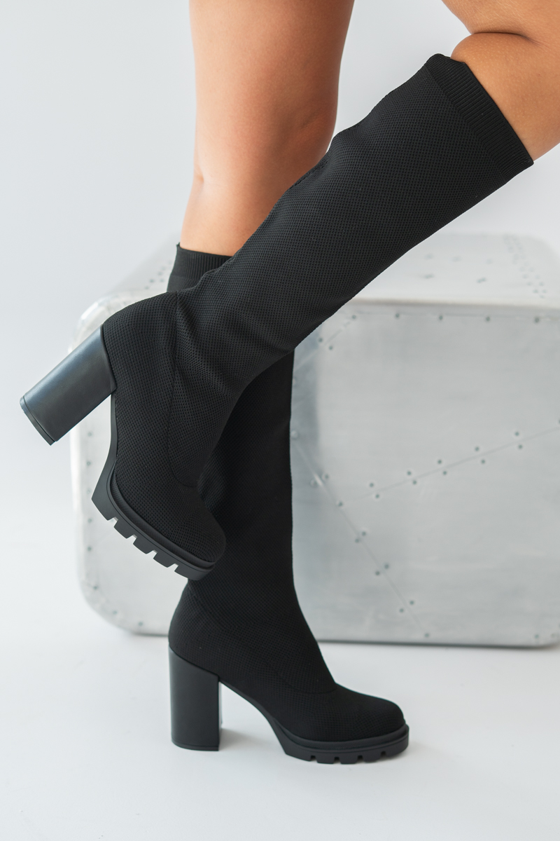 Kozaki z dopasowaną cholewką Czarne – Alirra