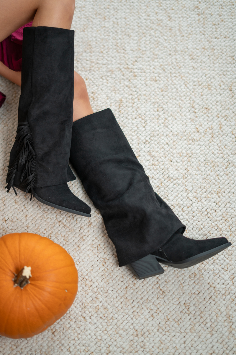 Wysokie kozaki z frędzlami Czarny – Fraylisse