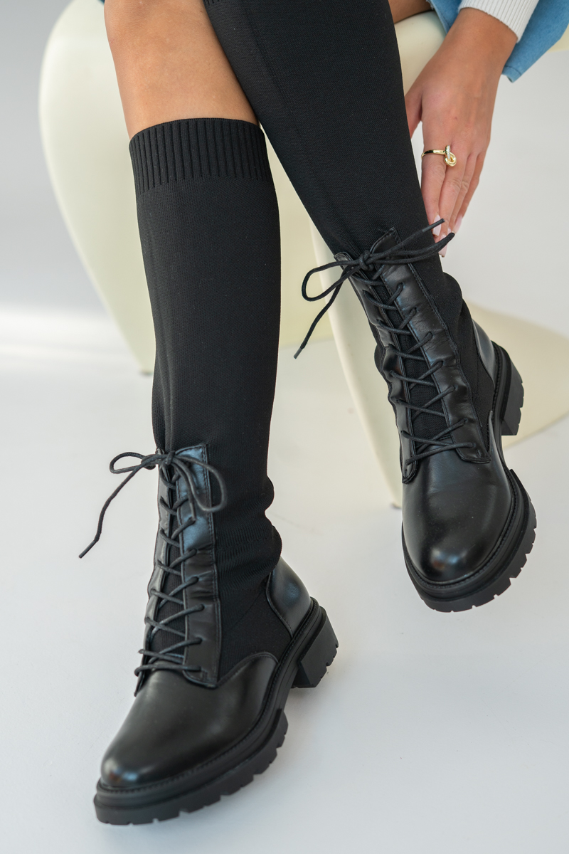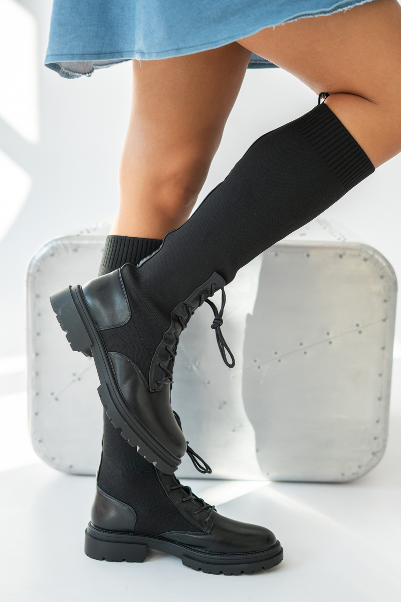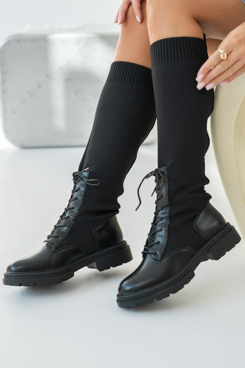 Długie kozaki sznurowane z przodu Czarne – Selara