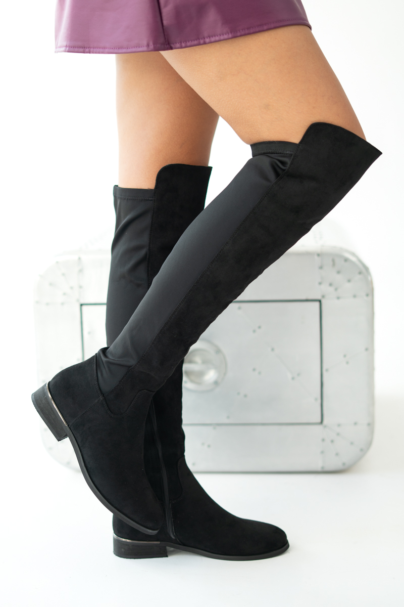 Długie zamszowe kozaki za kolano Czarne – Elavienne