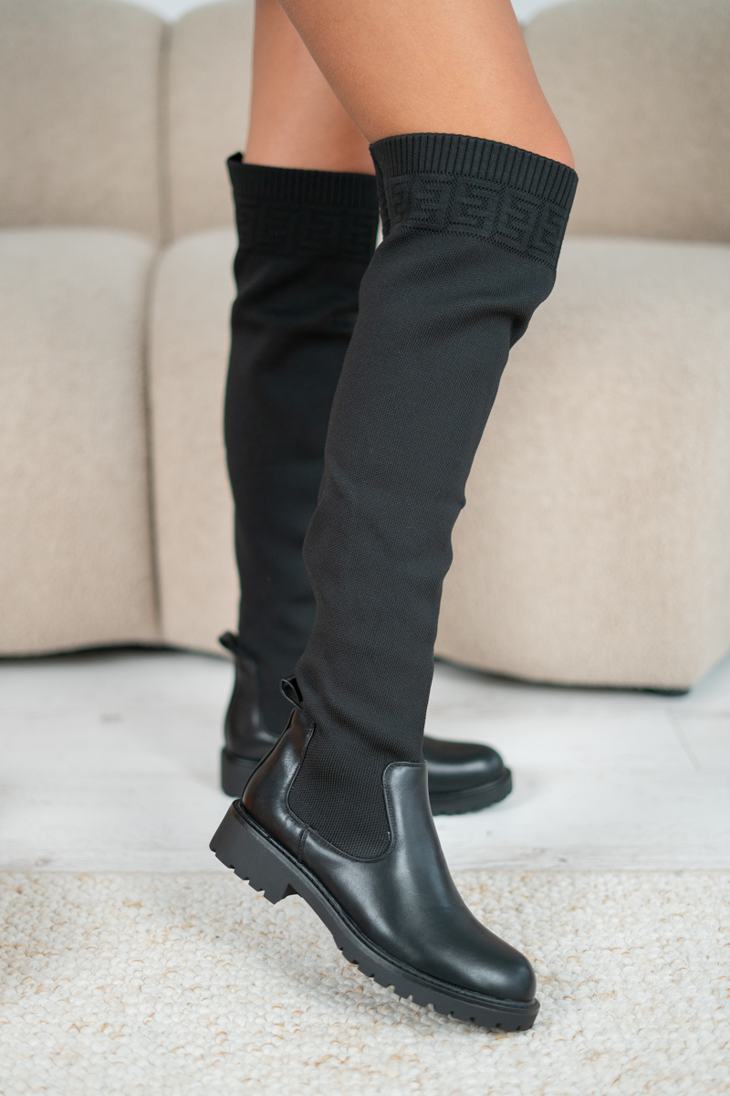 Kozaki skarpetkowe długie Syravine w kolorze czarnym to modny wybór dla kobiet ceniących styl i wygodę. Wykonane z elastycznego materiału, idealnie dopasowują się do nogi, podkreślając jej kształt i zapewniając komfort noszenia. Solidna, grubsza podeszwa dodaje im charakteru i gwarantuje stabilność na co dzień. Minimalistyczny design sprawia, że kozaki świetnie komponują się z sukienkami, spódnicami czy legginsami, tworząc nowoczesny i kobiecy look. To idealny model na sezon jesienno-zimowy – lekki, praktyczny i wyjątkowo stylowy.