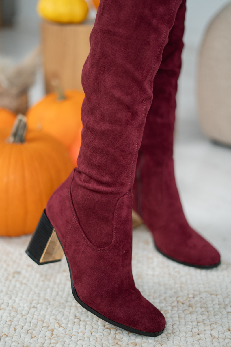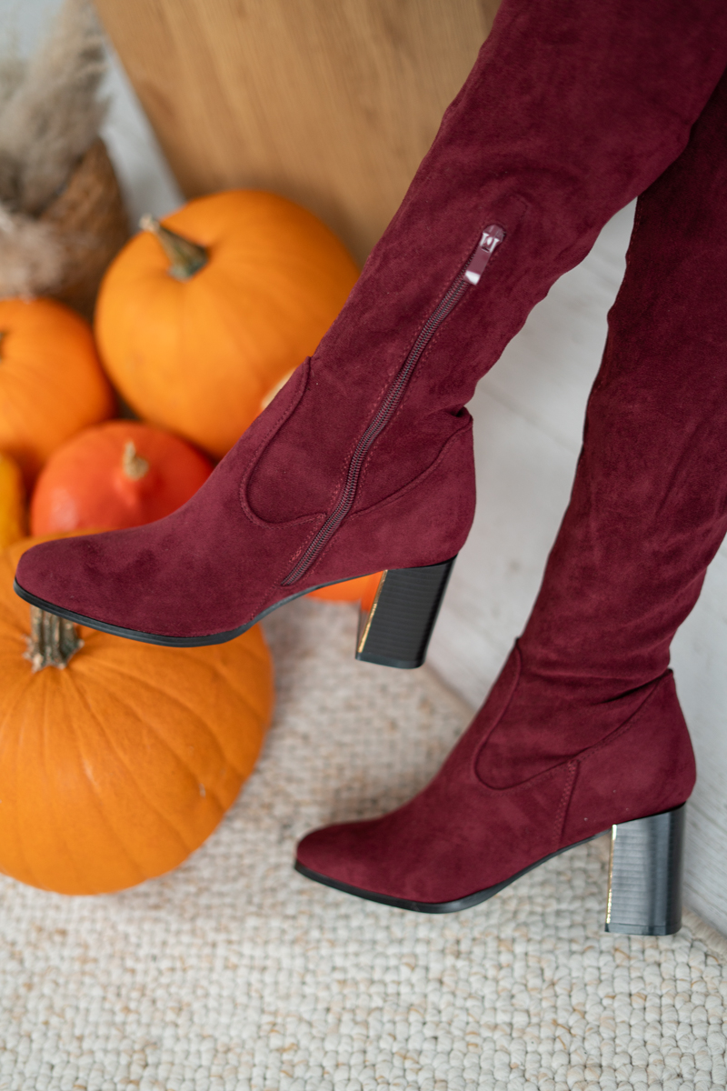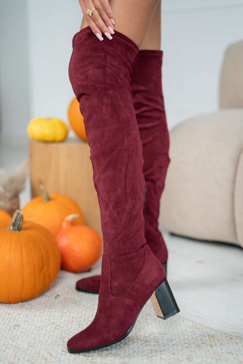 Kozaki z ozdobnym obcasem Bordowy – Evarisse