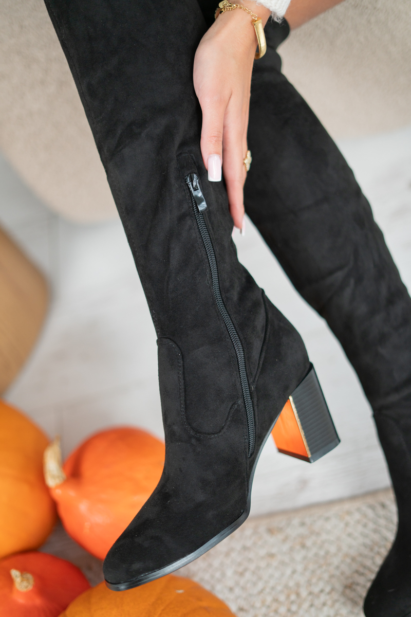 Kozaki z ozdobnym obcasem Czarny – Evarisse