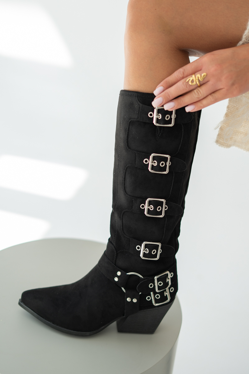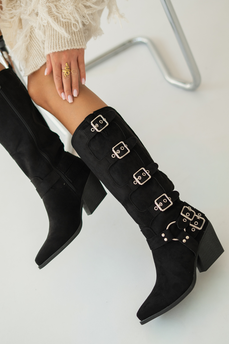 Wysokie kozaki z klamrami Czarne – Dorivelle