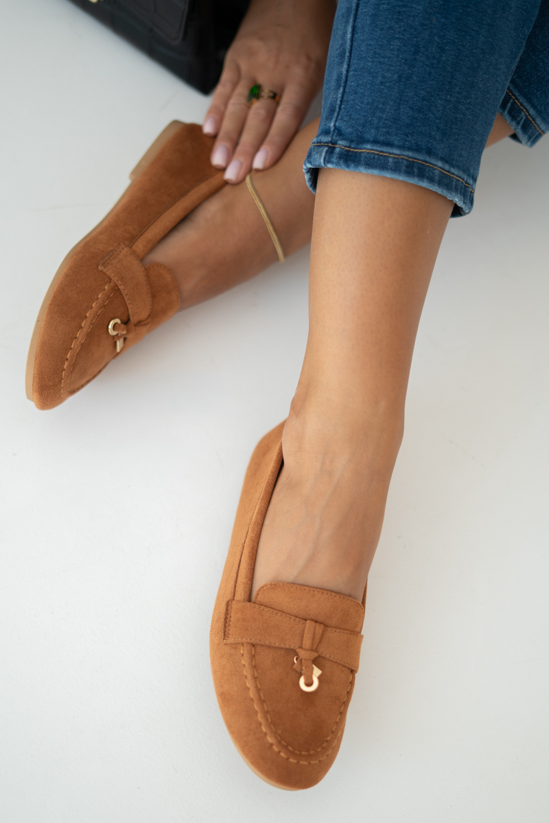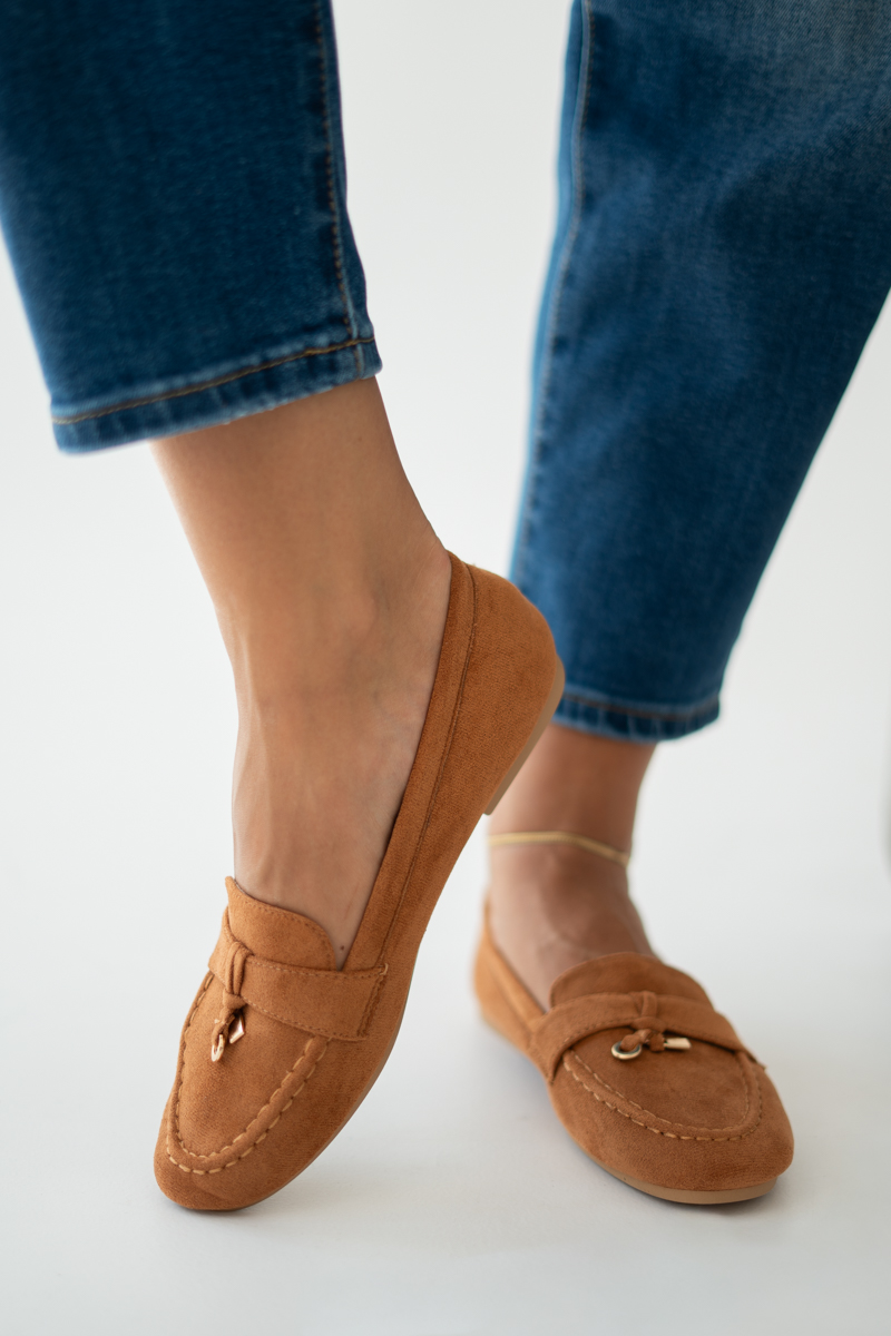 Loafersy na płaskiej podeszwie Camelowe – Osyrelle