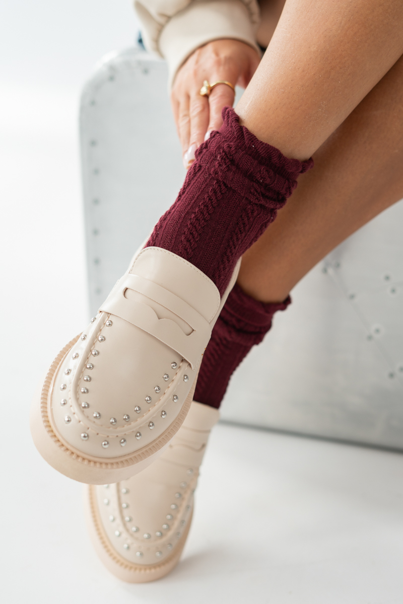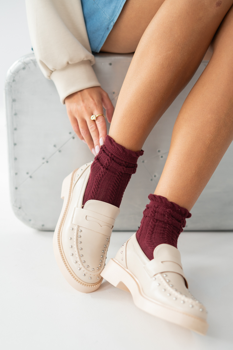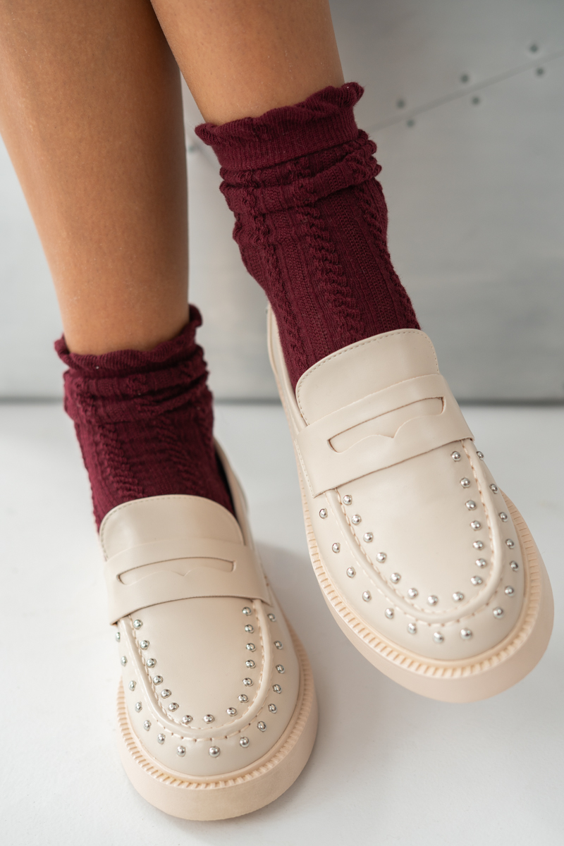Mokasyny damskie z ćwiekami Beżowe – Glemyssa