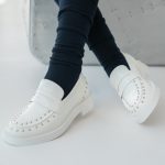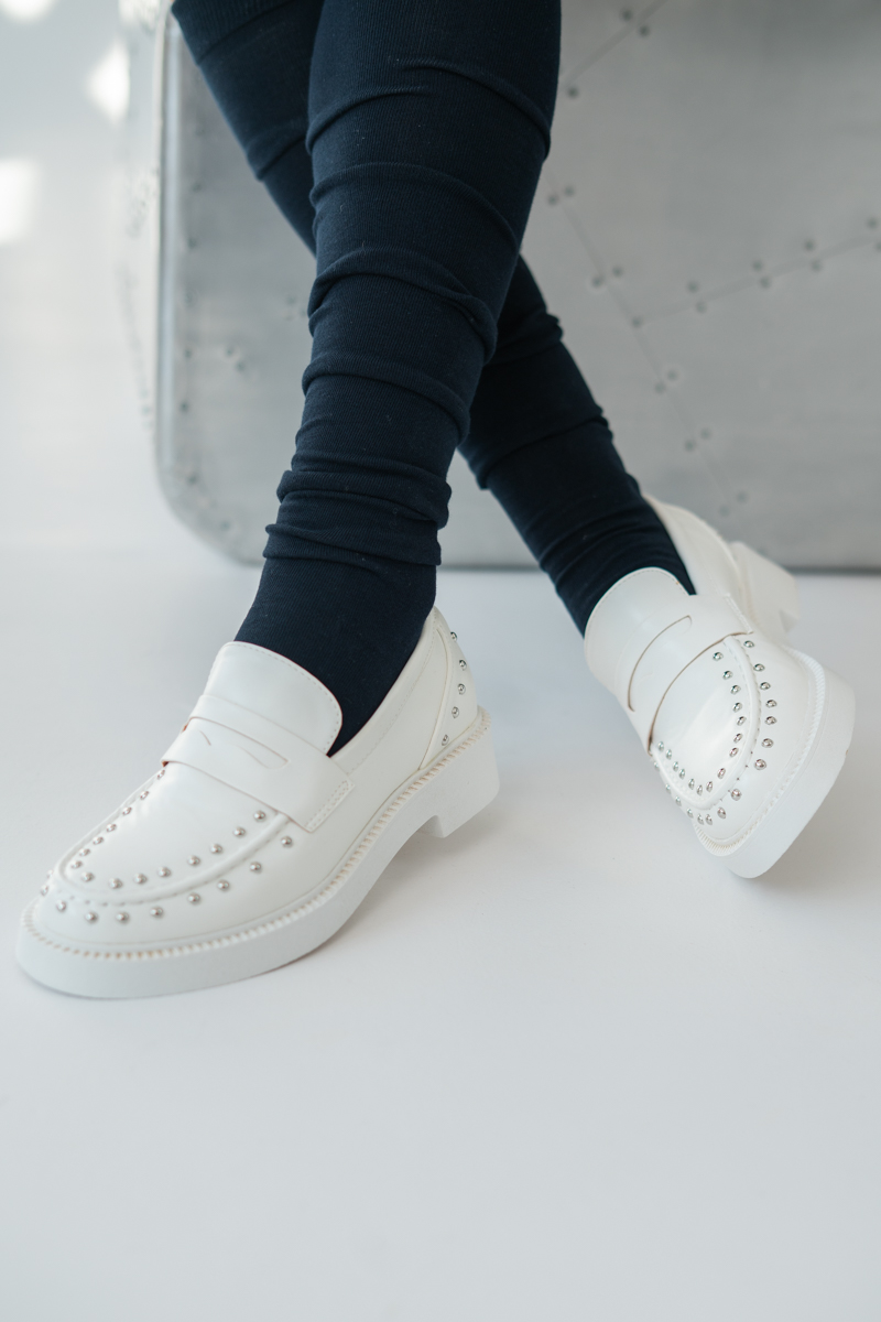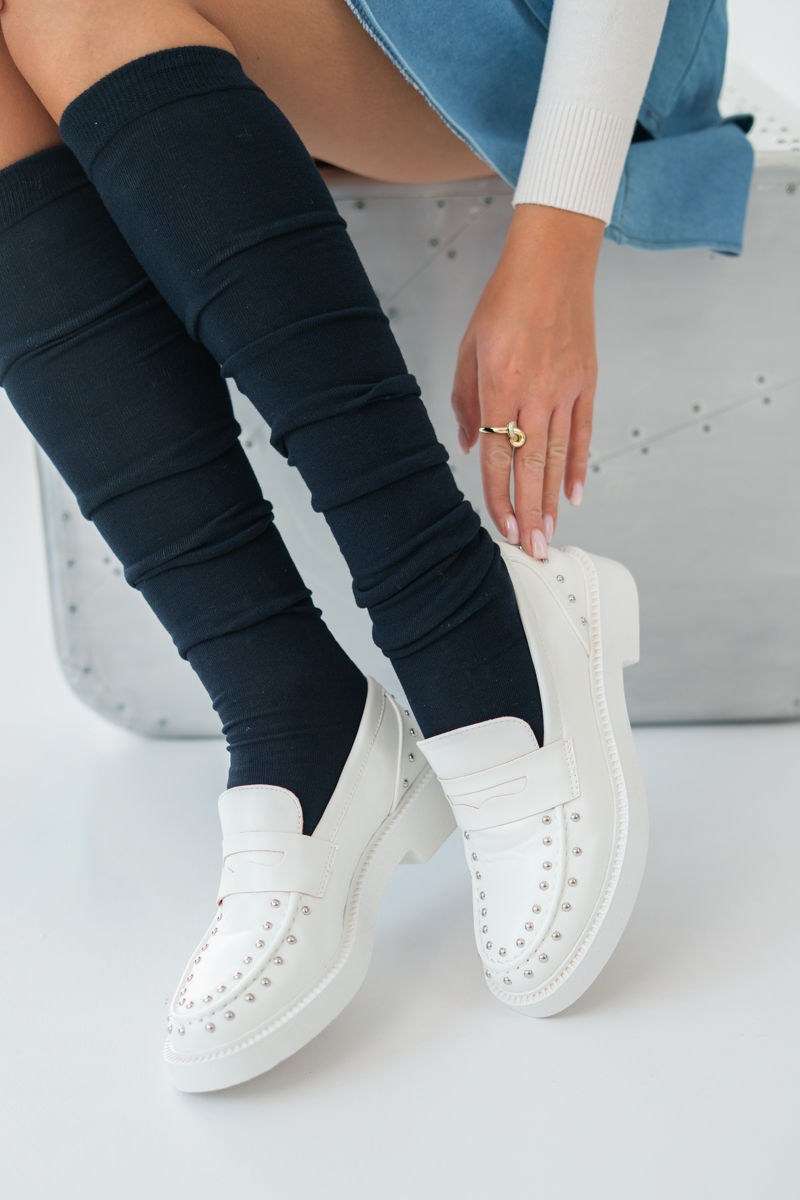 Mokasyny damskie z ćwiekami Biały – Glemyssa