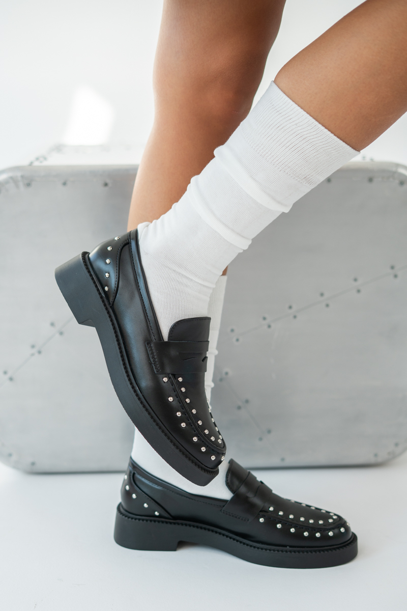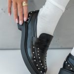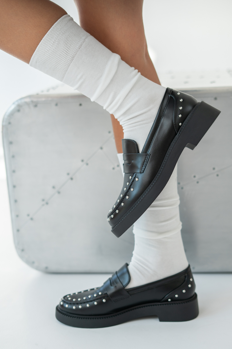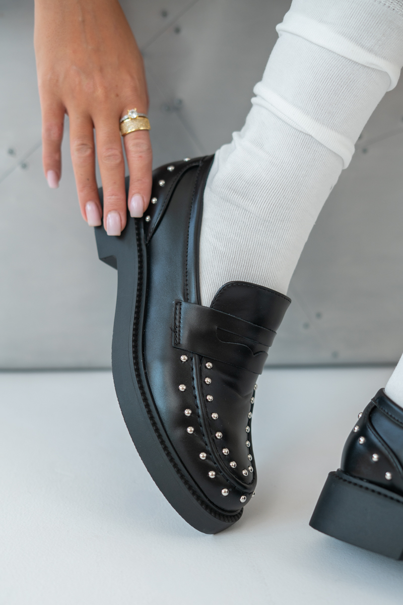 Mokasyny damskie z ćwiekami Czarny – Glemyssa