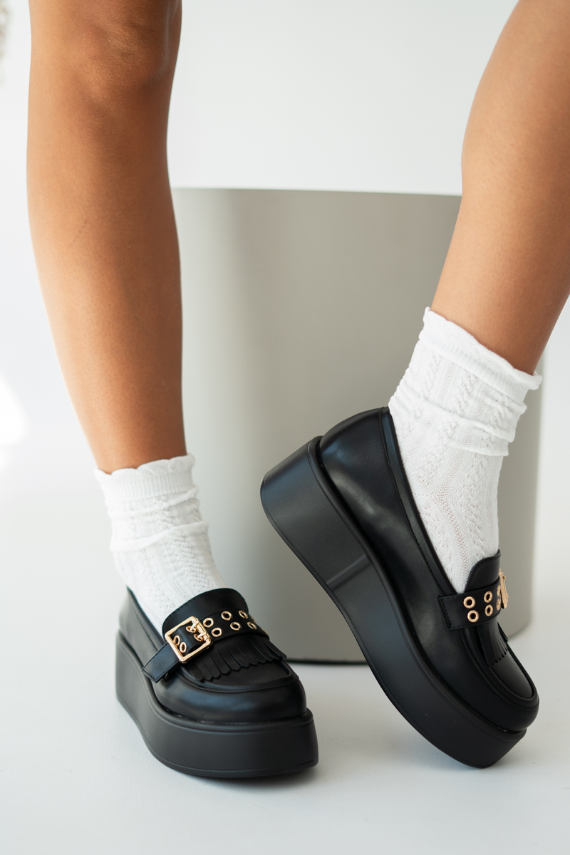 Mokasyny ze złotą klamrą Czarne – Olyrene