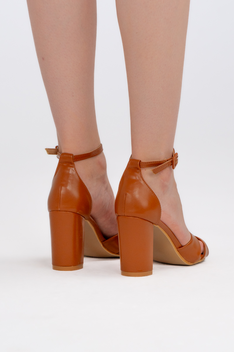 Klasyczne sandały na słupku z przeplatanymi paskami Camelowe – Marivelle